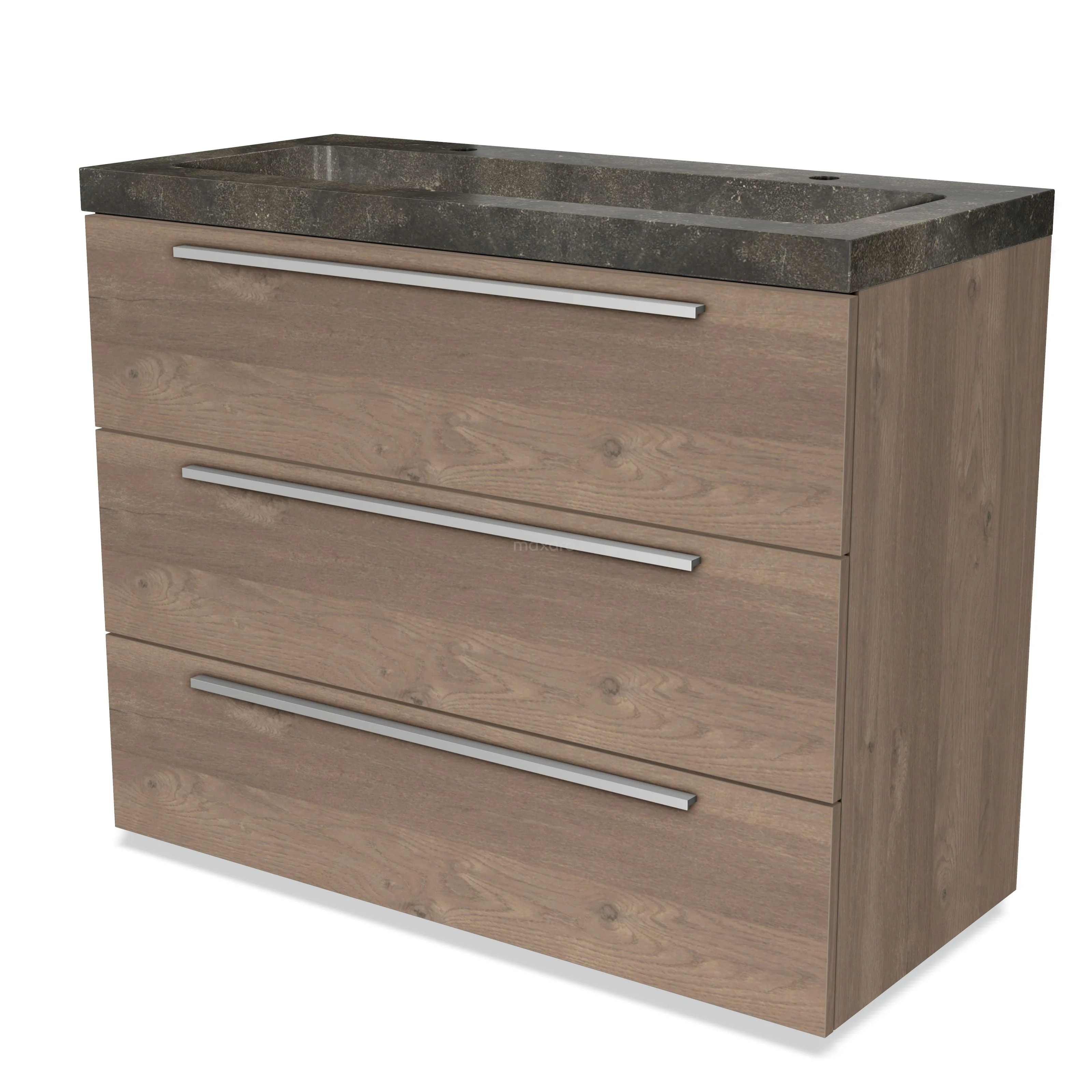 Modulo Waschtische | 100 cm Mittelbraune Eiche Flach front Naturstein 3 Schubladen