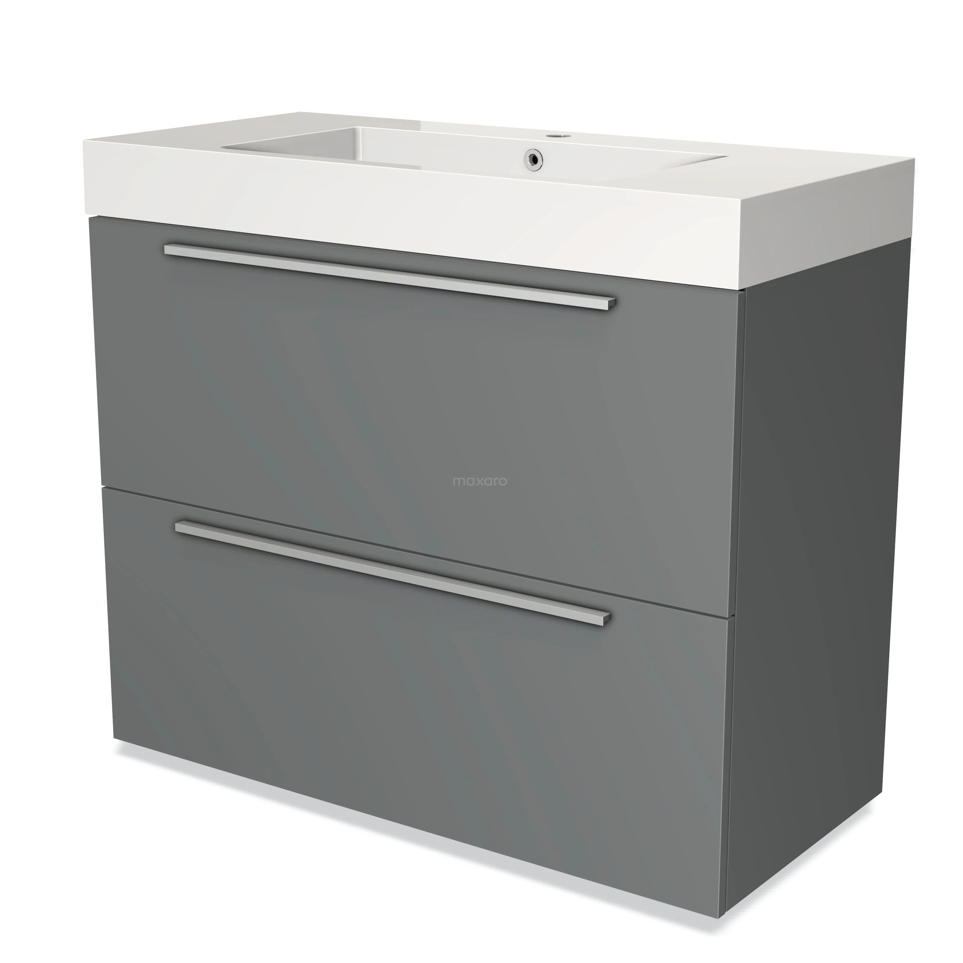 Modulo Waschtische | 100 cm Mittelgrau Flach front Mineralguss 2 hohe Schubladen übereinanderliegend