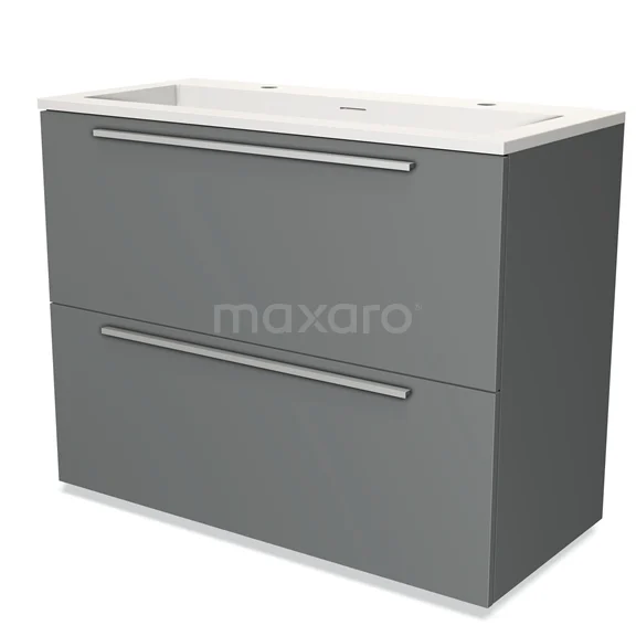 Modulo Waschtische | 100 cm Mittelgrau Flach front Solid Surface 2 hohe Schubladen übereinanderliegend
