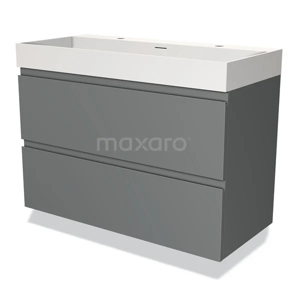 Modulo Waschtische | 100 cm Mittelgrau Grifflos front Solid Surface 2 übereinanderliegende Schubladen
