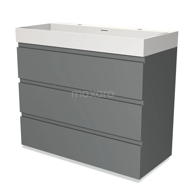 Modulo Waschtische | 100 cm Mittelgrau Grifflos front Solid Surface 3 Schubladen
