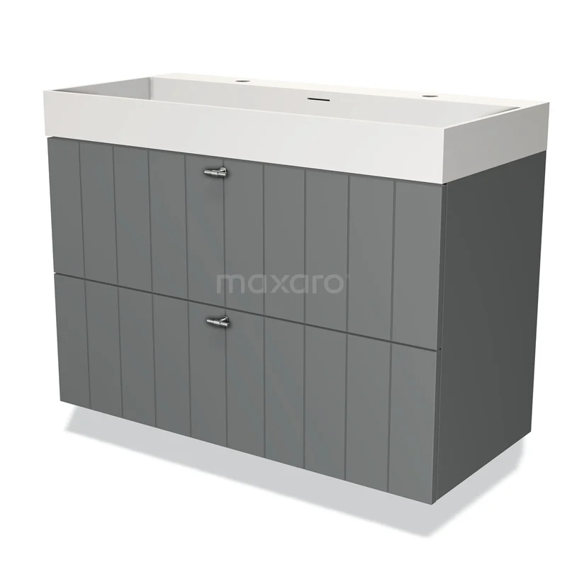 Modulo Waschtische | 100 cm Mittelgrau Lamelle front Solid Surface 2 übereinanderliegende Schubladen