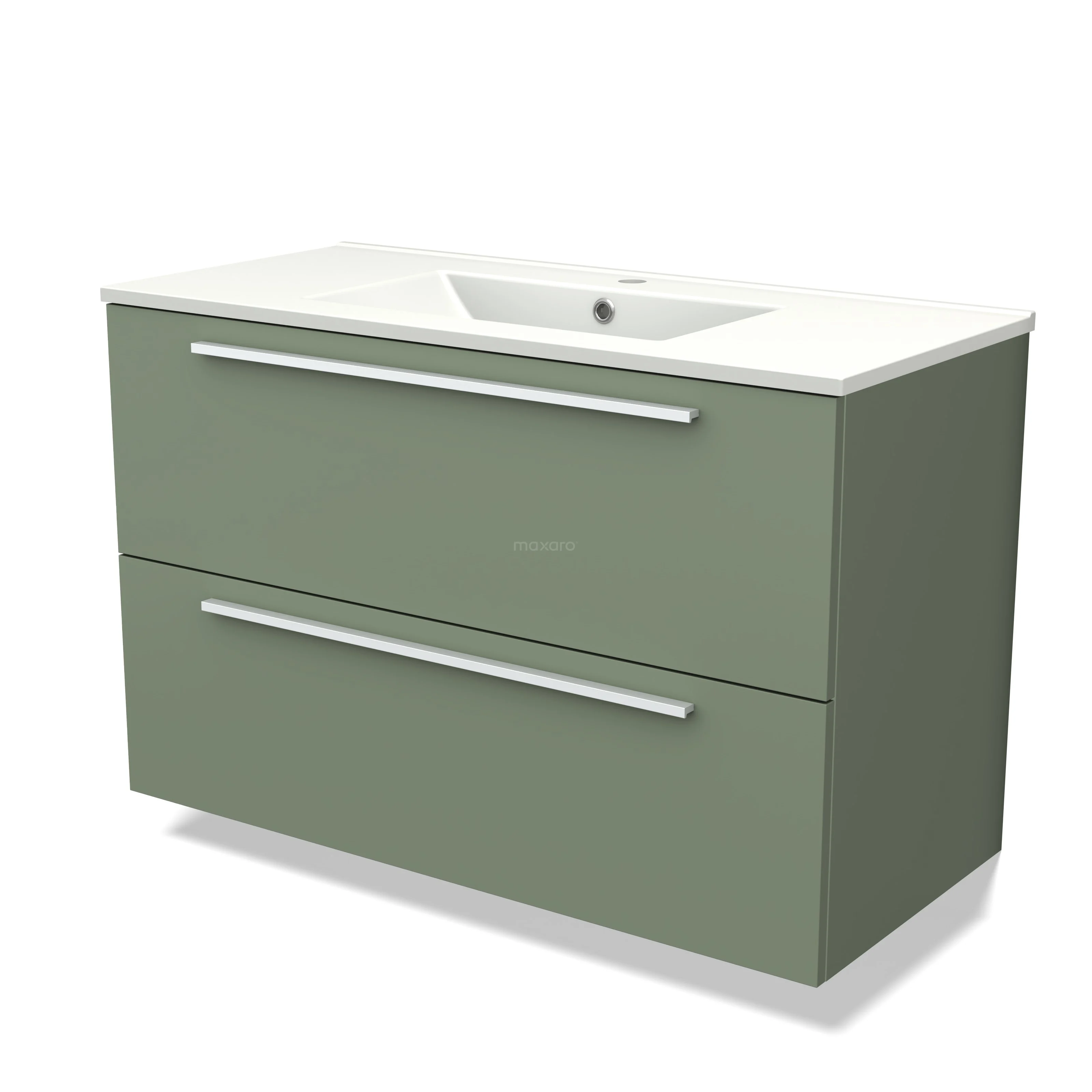 Modulo Waschtische | 100 cm Salbeigrün Flach front Keramik 2 übereinanderliegende Schubladen