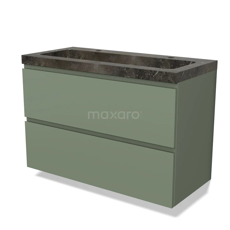 Modulo Waschtische | 100 cm Salbeigrün Grifflos front Naturstein 2 übereinanderliegende Schubladen