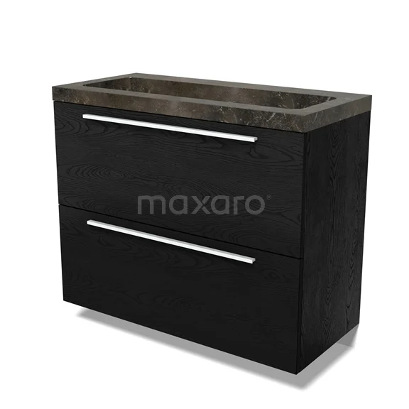 Modulo Waschtische | 100 cm Schwarze Eiche Flach front Naturstein 2 hohe Schubladen übereinanderliegend