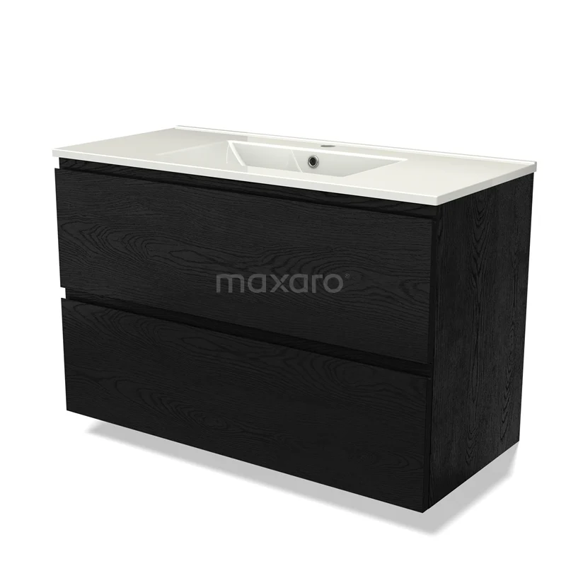 Modulo Waschtische | 100 cm Schwarze Eiche Grifflos front Keramik 2 übereinanderliegende Schubladen