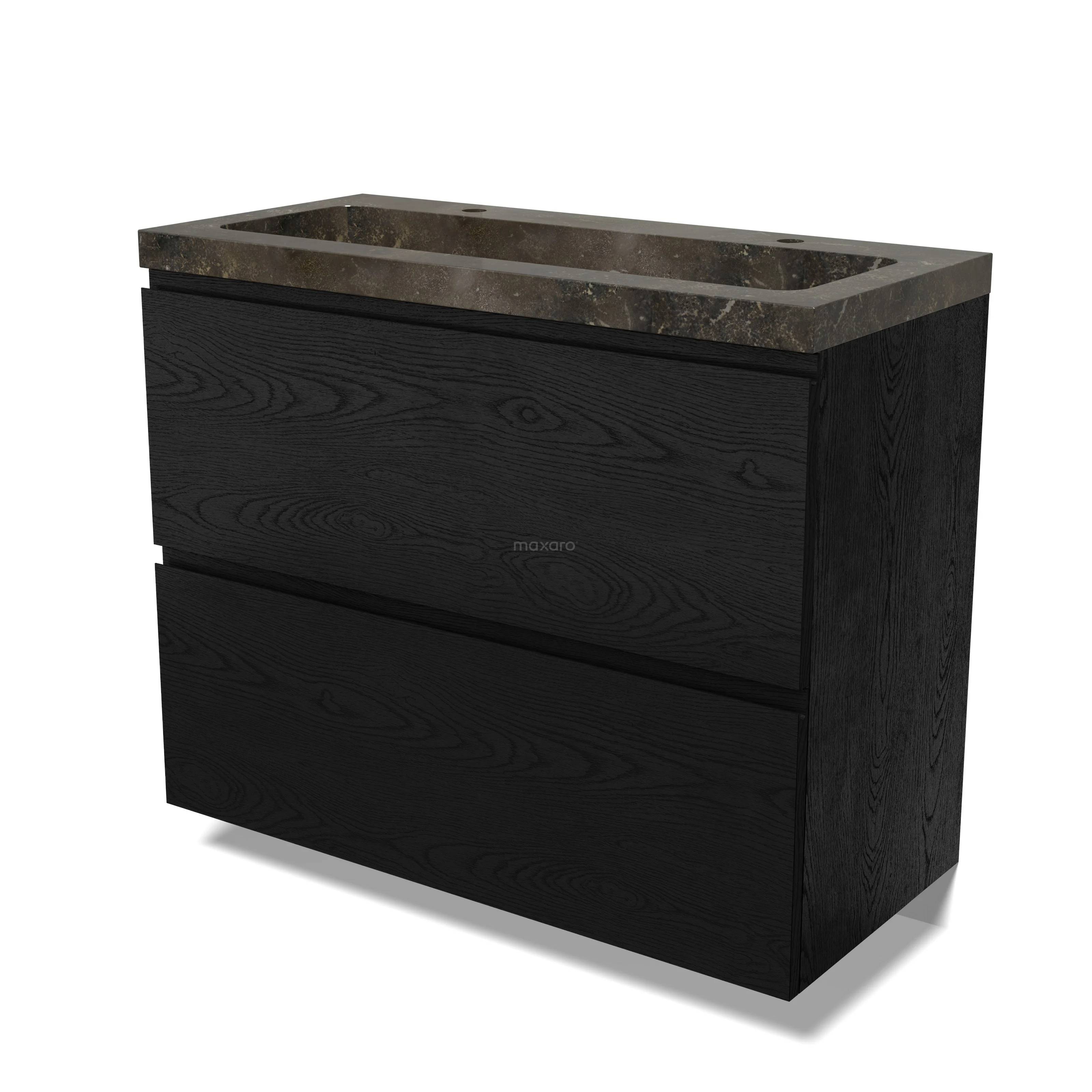 Modulo Waschtische | 100 cm Schwarze Eiche Grifflos front Naturstein 2 hohe Schubladen übereinanderliegend