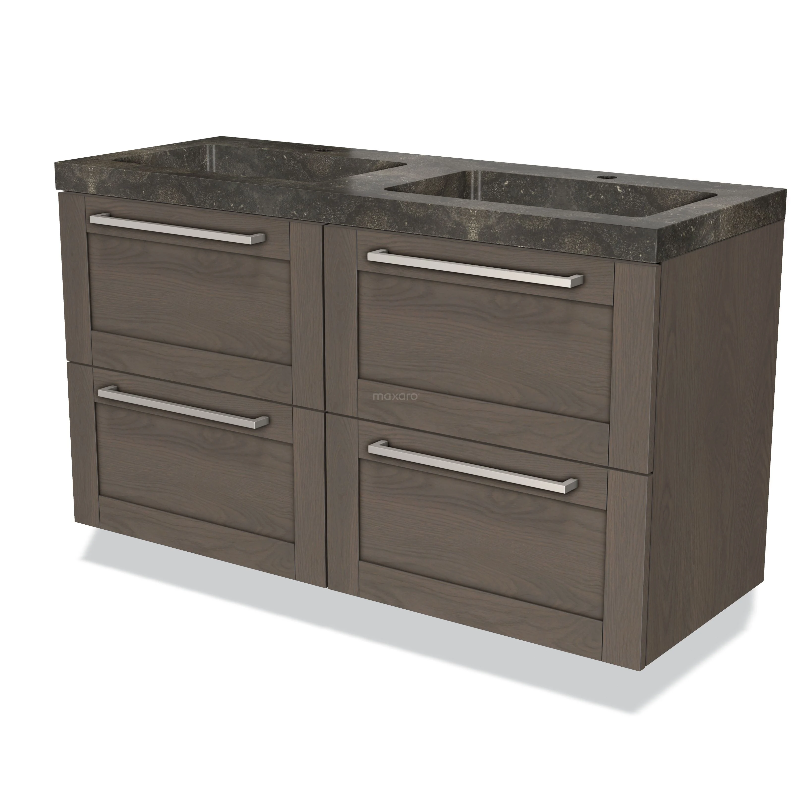 Modulo Waschtische | 120 cm Dunkelbraune Eiche Rahmen front Naturstein 4 Schubladen