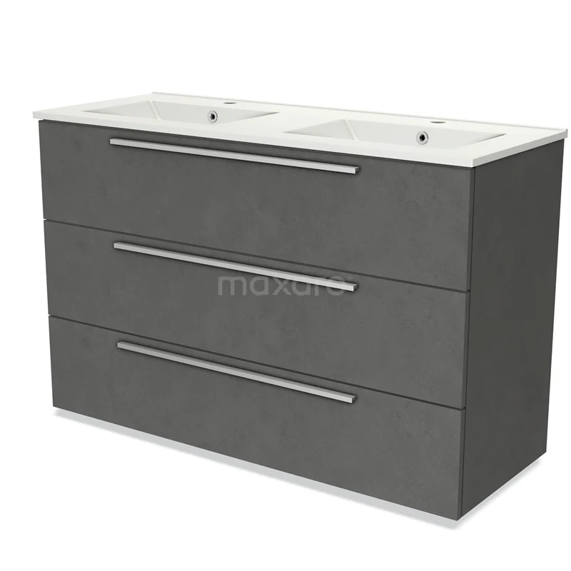 Modulo Waschtische | 120 cm Dunkelgrauer Beton Flach front Keramik 3 Schubladen