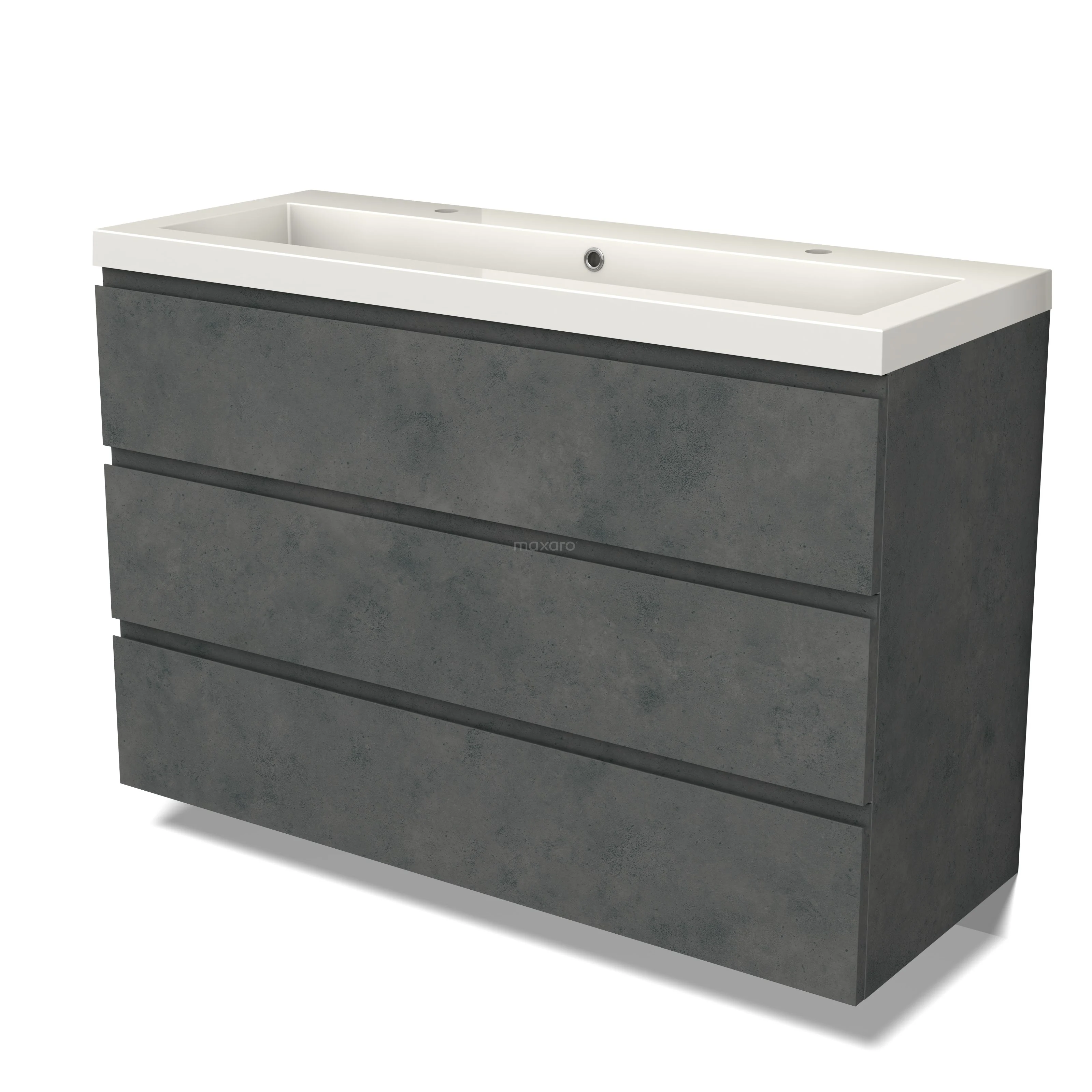 Modulo Waschtische | 120 cm Dunkelgrauer Beton Grifflos front Mineralguss 3 Schubladen