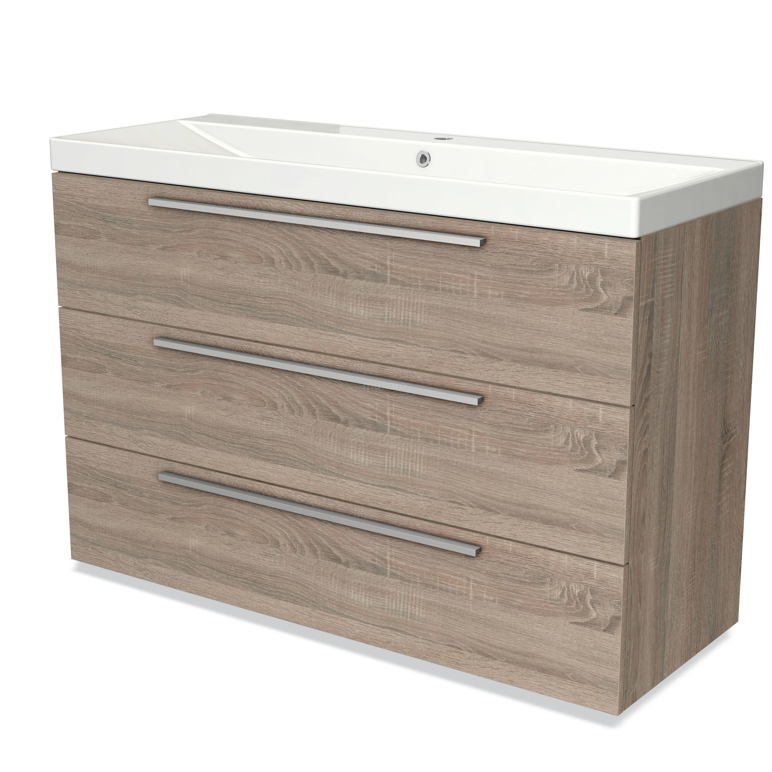 Modulo Waschtische | 120 cm Eiche Flach front Keramik 3 Schubladen