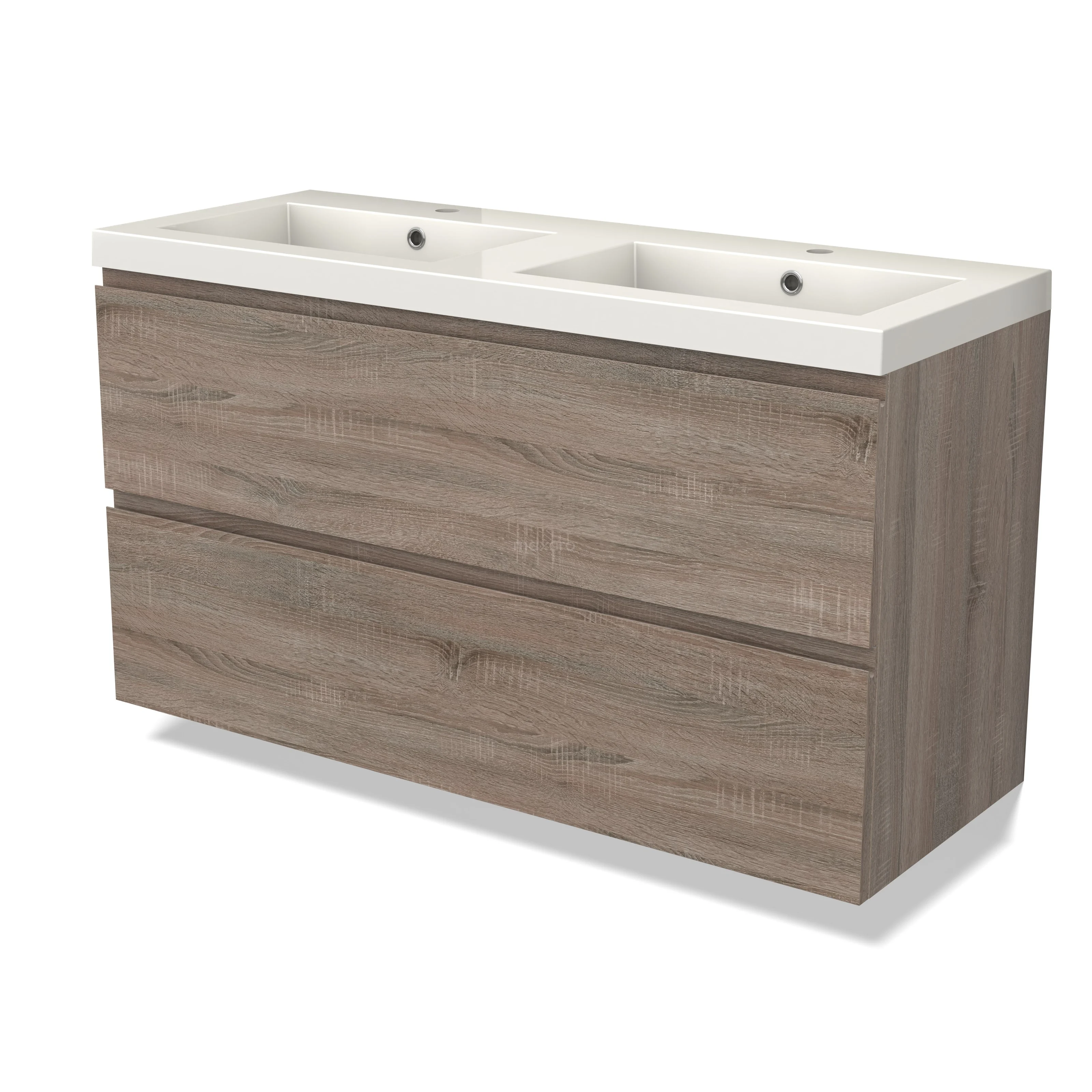 Modulo Waschtische | 120 cm Eiche Grifflos front Mineralguss 2 übereinanderliegende Schubladen