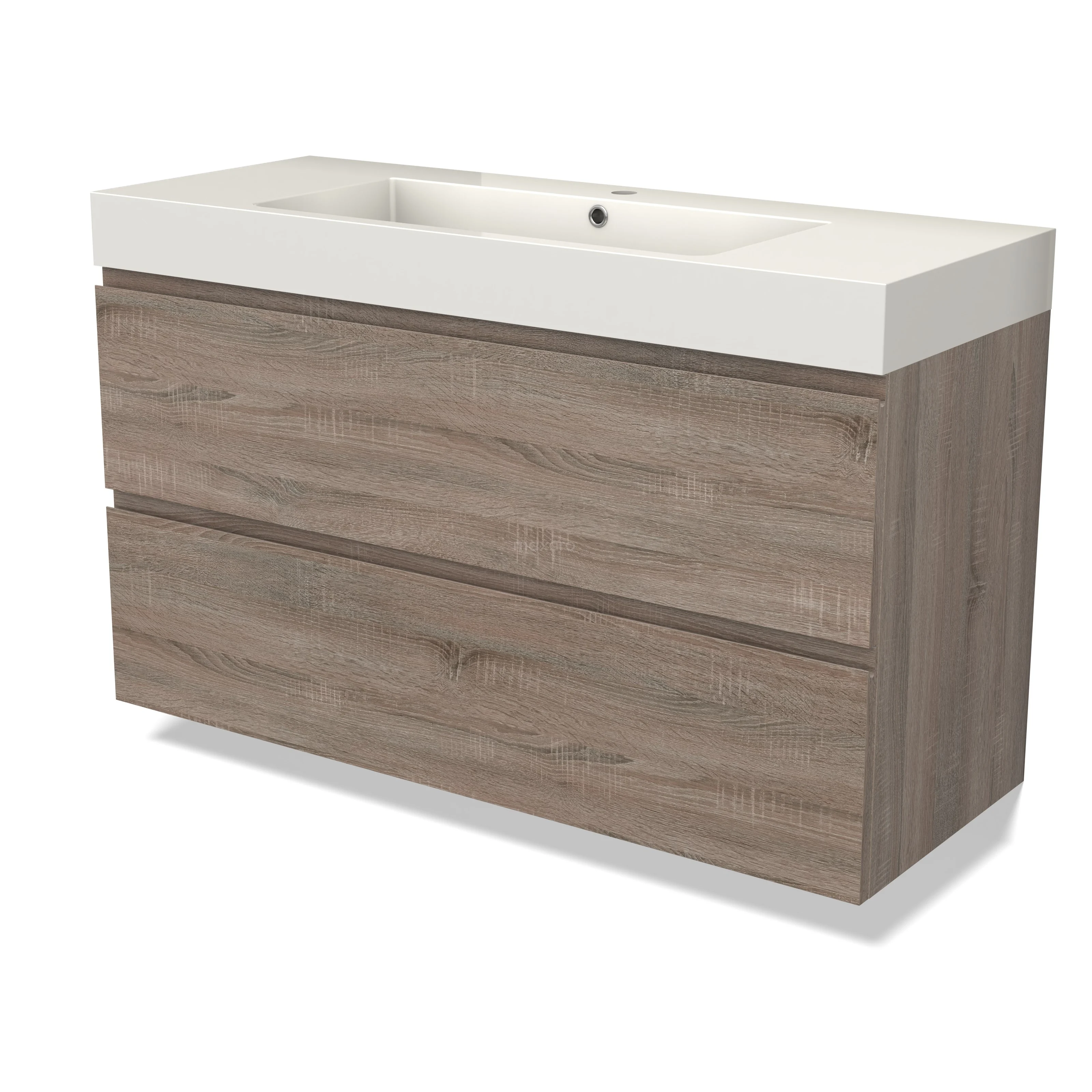 Modulo Waschtische | 120 cm Eiche Grifflos front Mineralguss 2 übereinanderliegende Schubladen