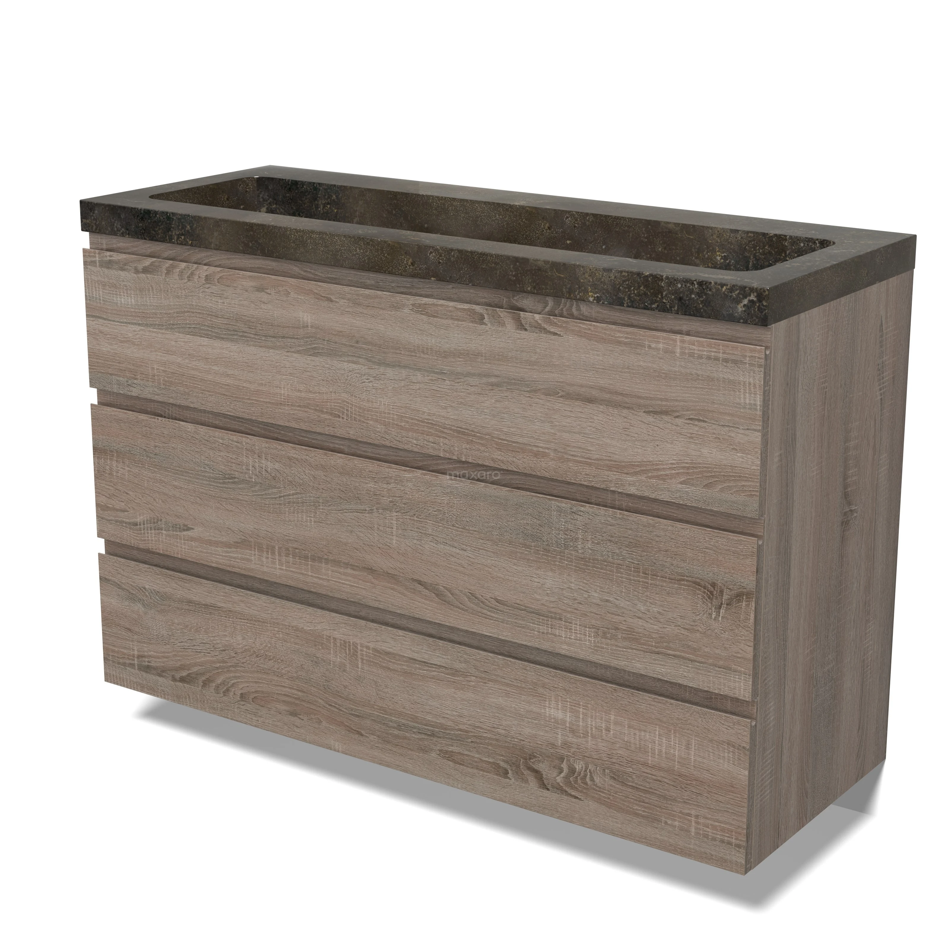 Modulo Waschtische | 120 cm Eiche Grifflos front Naturstein 3 Schubladen