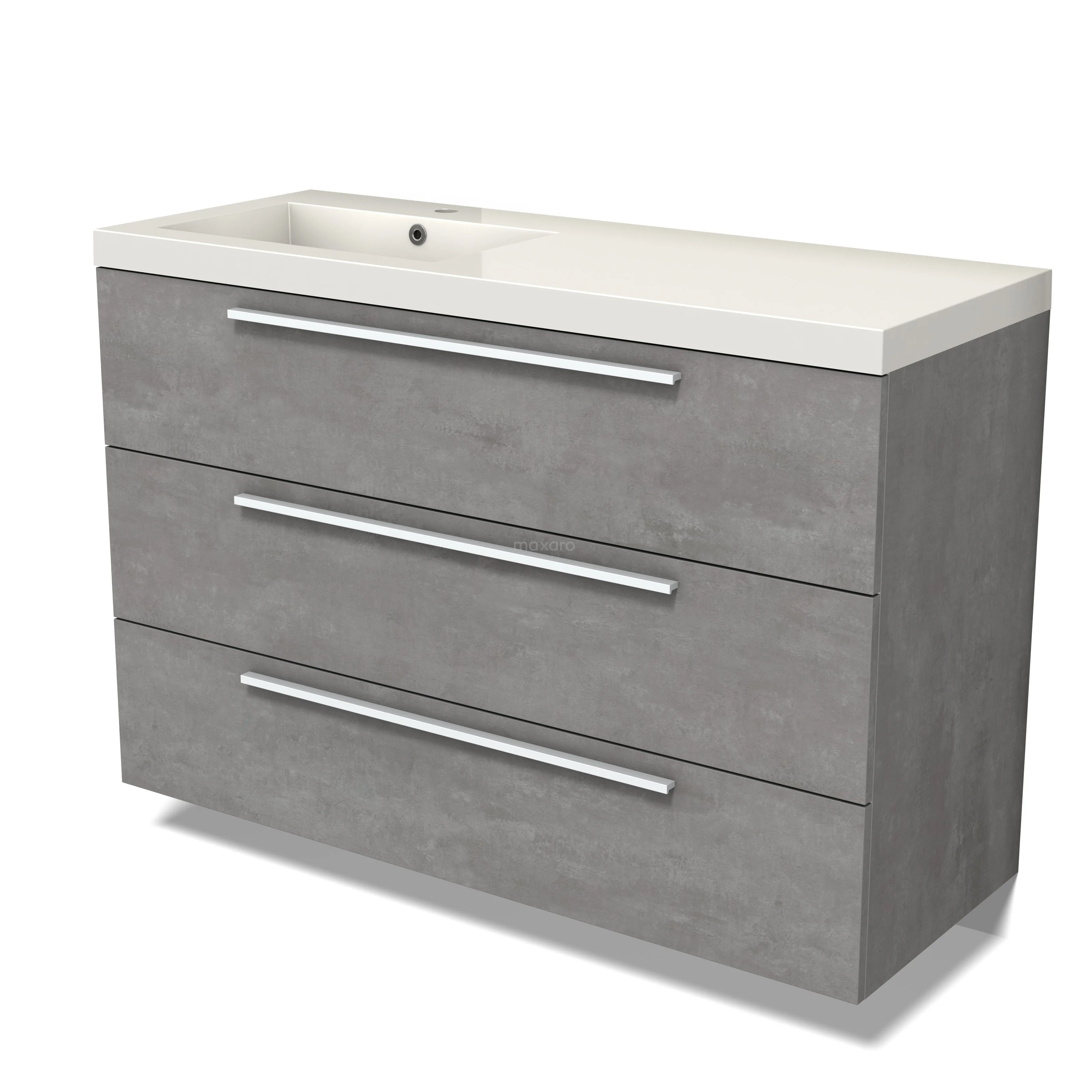 Modulo Waschtische | 120 cm Hellgrauer Beton Flach front Mineralguss 3 Schubladen