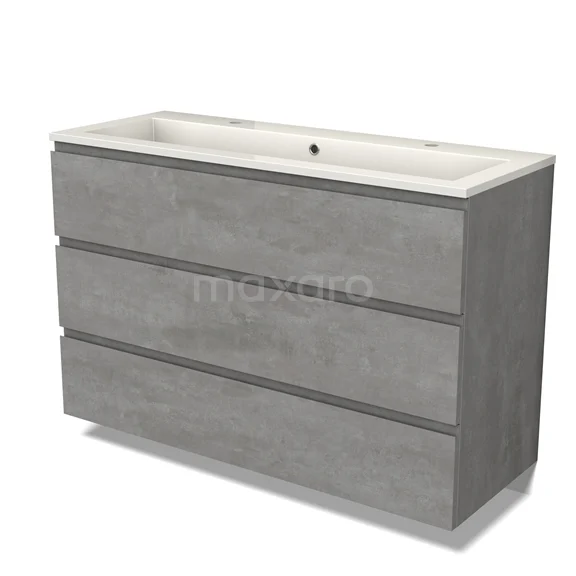 Modulo Waschtische | 120 cm Hellgrauer Beton Grifflos front Mineralguss 3 Schubladen