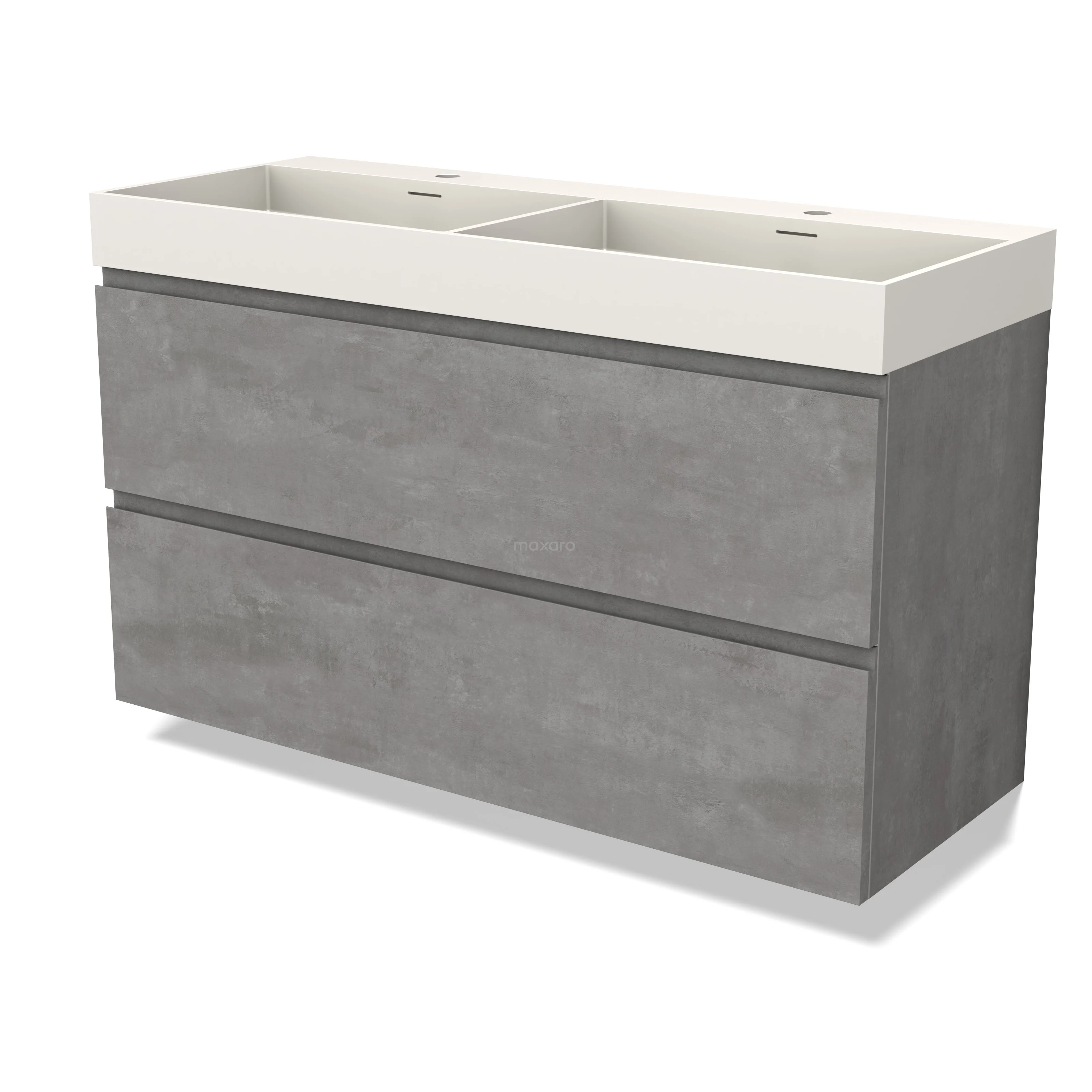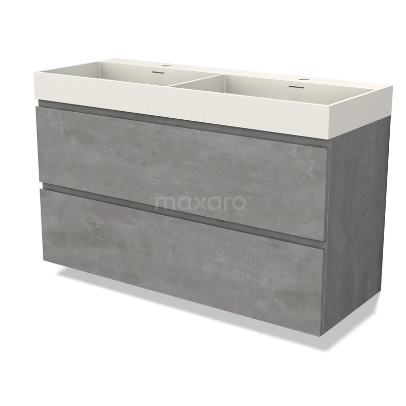 Modulo Waschtische | 120 cm Hellgrauer Beton Grifflos front Solid Surface 2 übereinanderliegende Schubladen