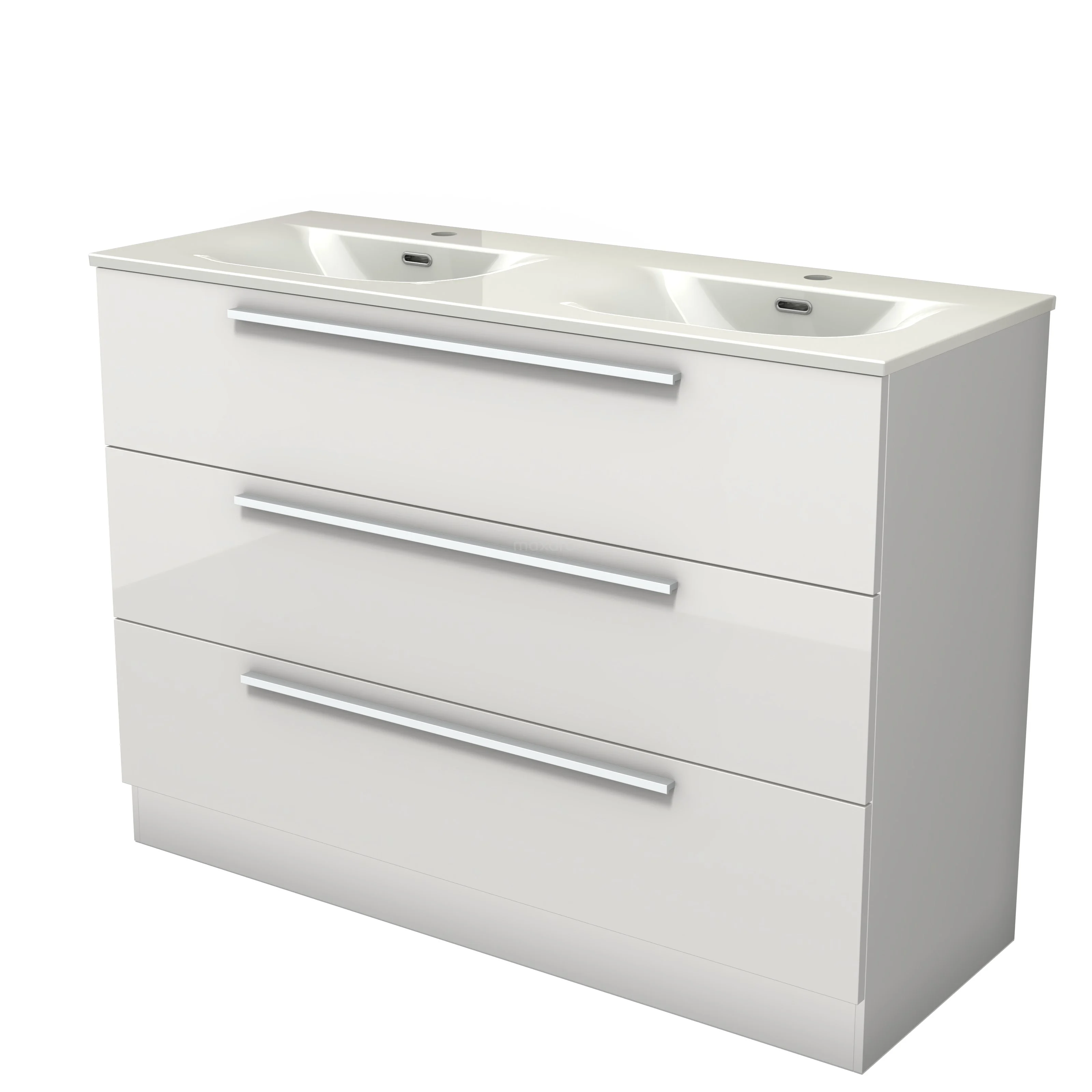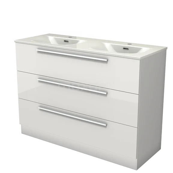 Modulo Waschtische | 120 cm Hochglanz Weiß Flach front Keramik 3 stehende Schubladen