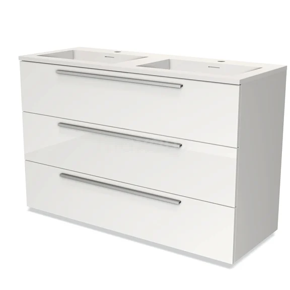 Modulo Waschtische | 120 cm Hochglanz Weiß Flach front Solid Surface 3 Schubladen