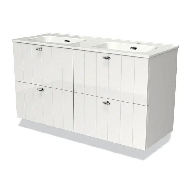 Modulo Waschtische | 120 cm Hochglanz Weiß Lamelle front Keramik 4 Schubladen