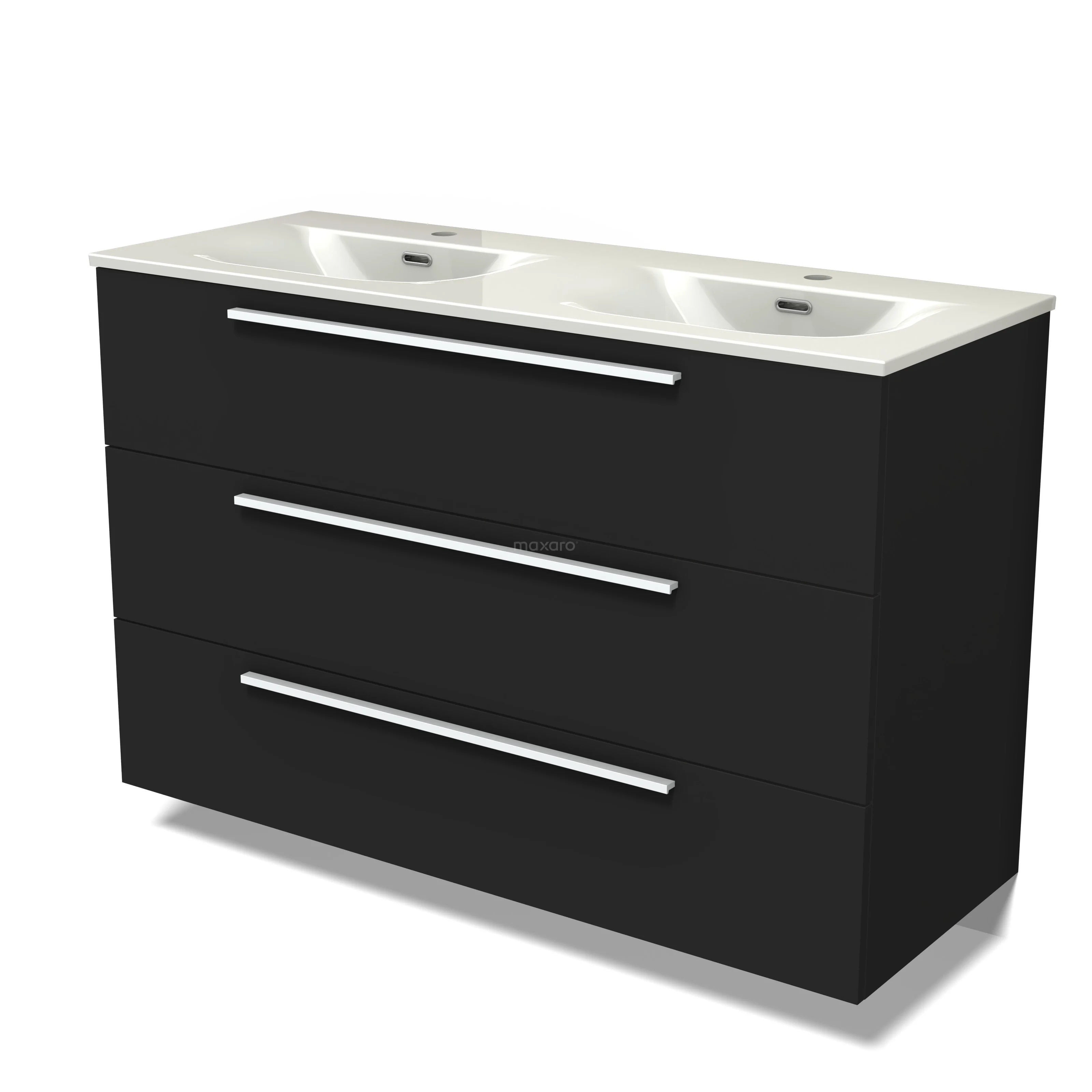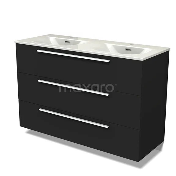 Modulo Waschtische | 120 cm Matt Schwarz Flach front Keramik 3 Schubladen