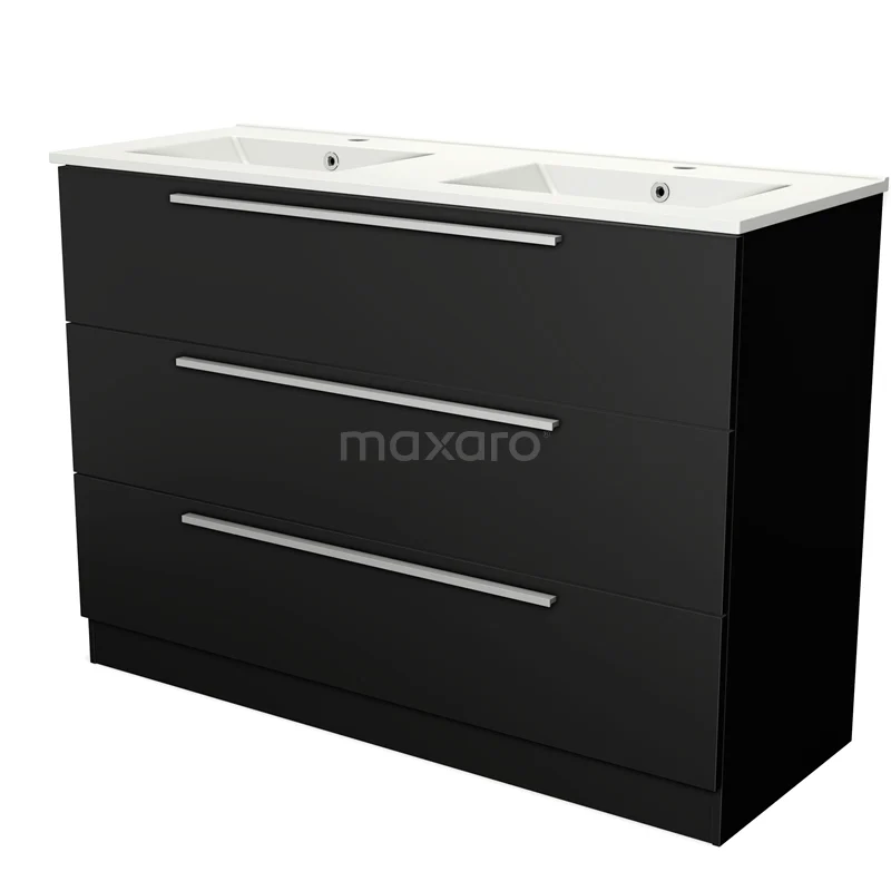 Modulo Waschtische | 120 cm Matt Schwarz Flach front Keramik 3 stehende Schubladen