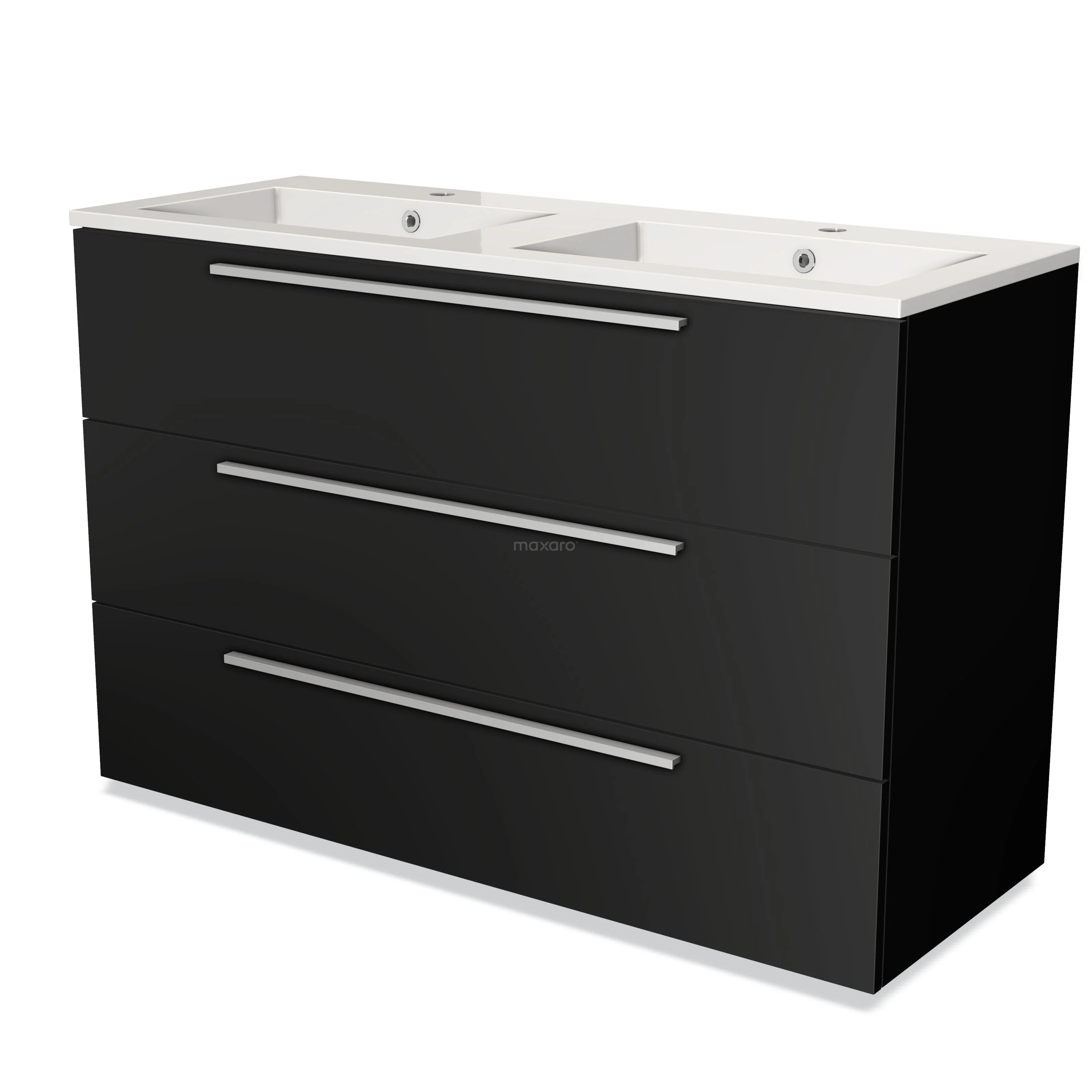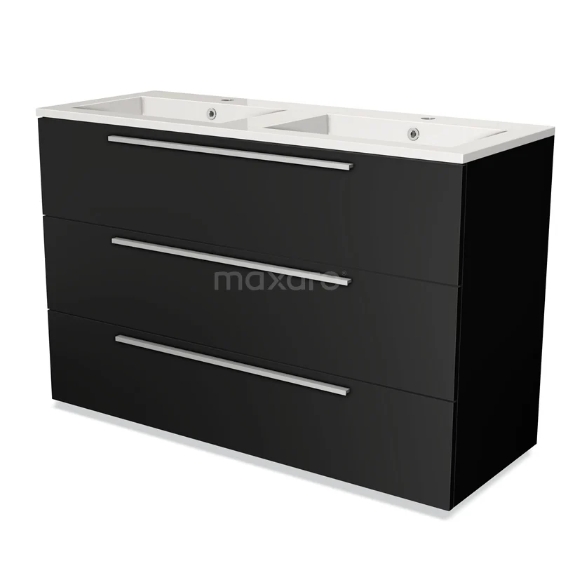 Modulo Waschtische | 120 cm Matt Schwarz Flach front Mineralguss 3 Schubladen