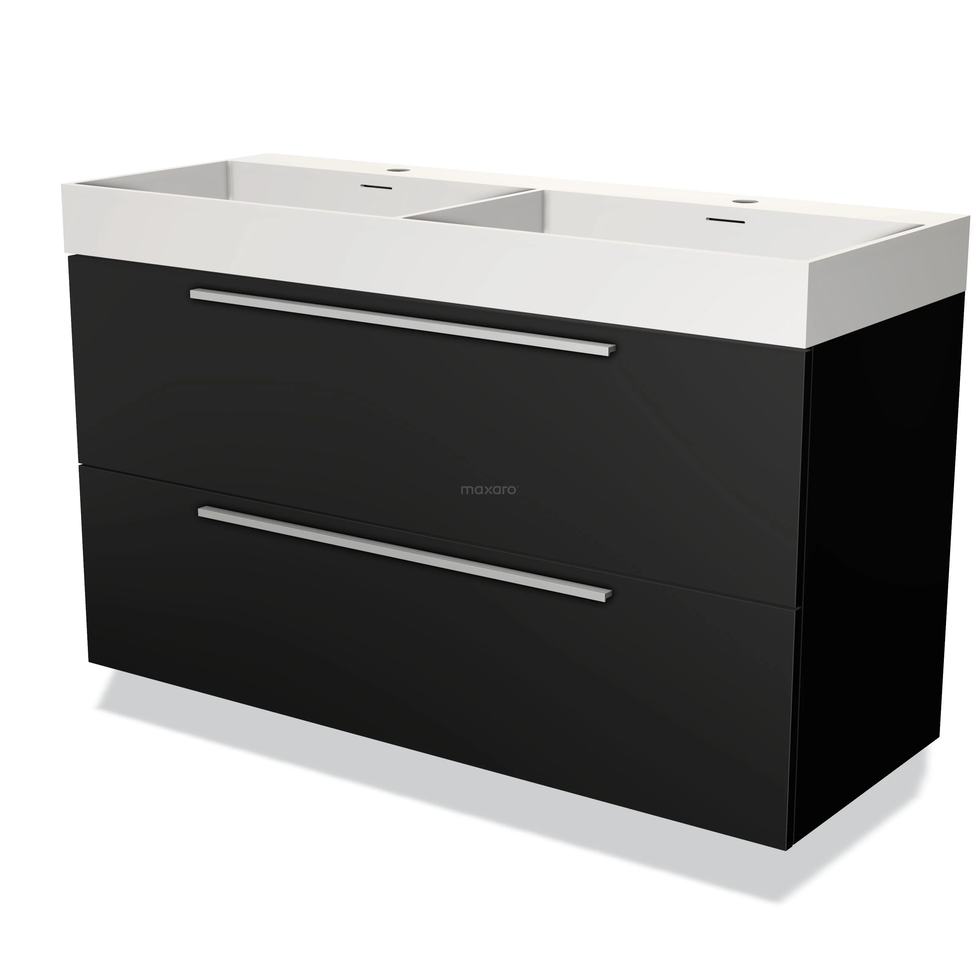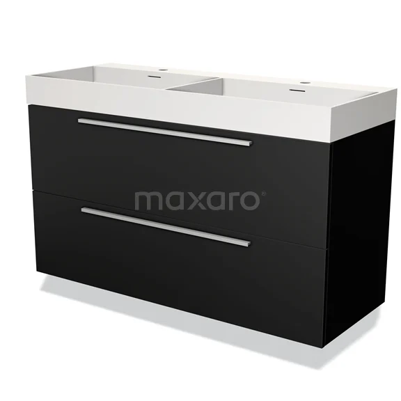 Modulo Waschtische | 120 cm Matt Schwarz Flach front Solid Surface 2 übereinanderliegende Schubladen