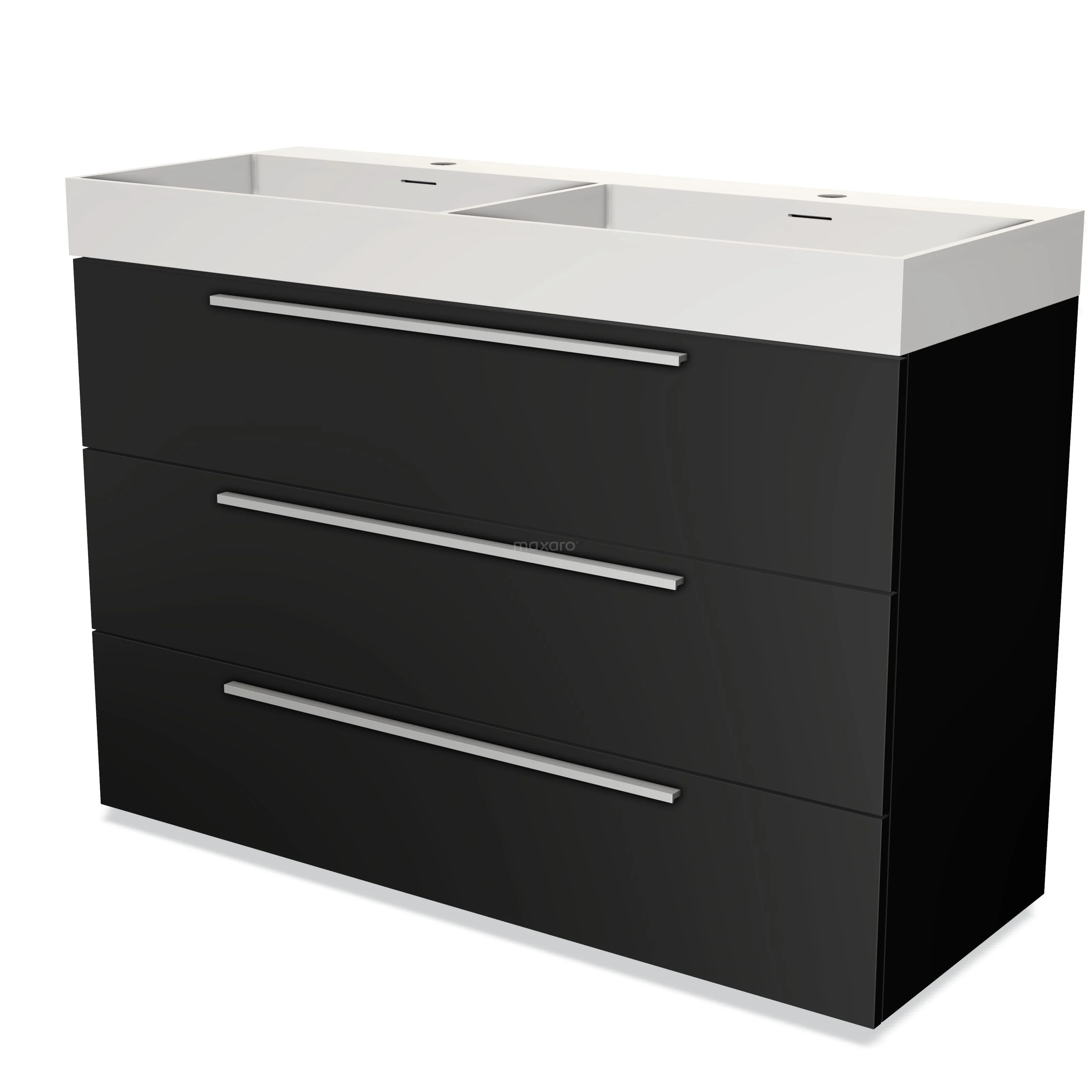 Modulo Waschtische | 120 cm Matt Schwarz Flach front Solid Surface 3 Schubladen