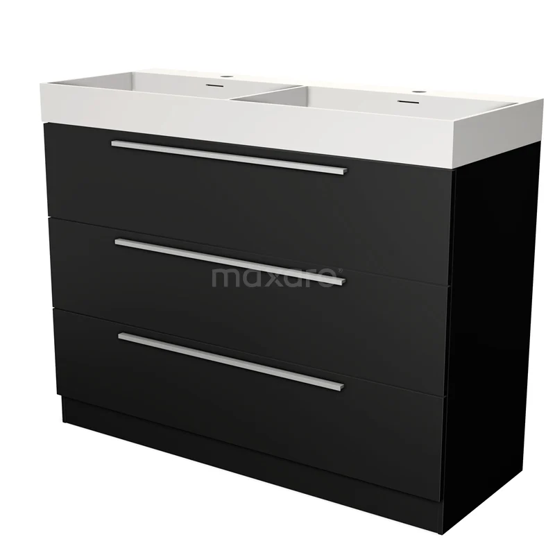 Modulo Waschtische | 120 cm Matt Schwarz Flach front Solid Surface 3 stehende Schubladen