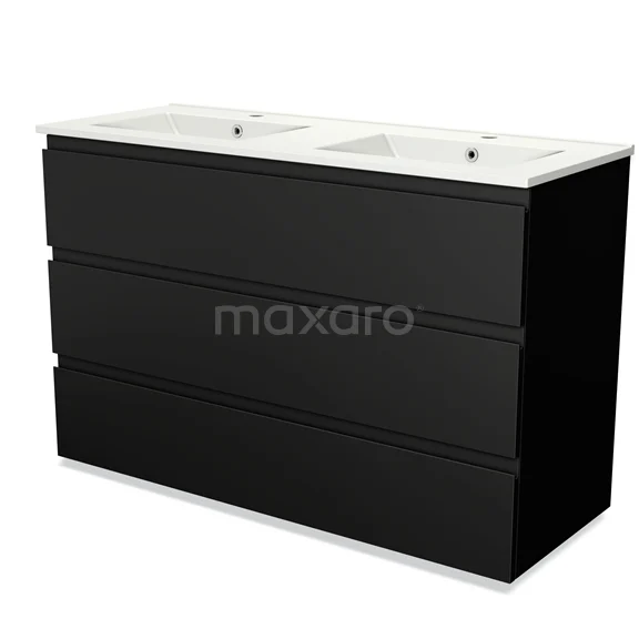 Modulo Waschtische | 120 cm Matt Schwarz Grifflos front Keramik 3 Schubladen