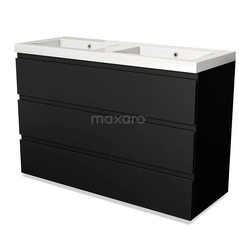 Modulo Waschtische | 120 cm Matt Schwarz Grifflos front Mineralguss 3 Schubladen