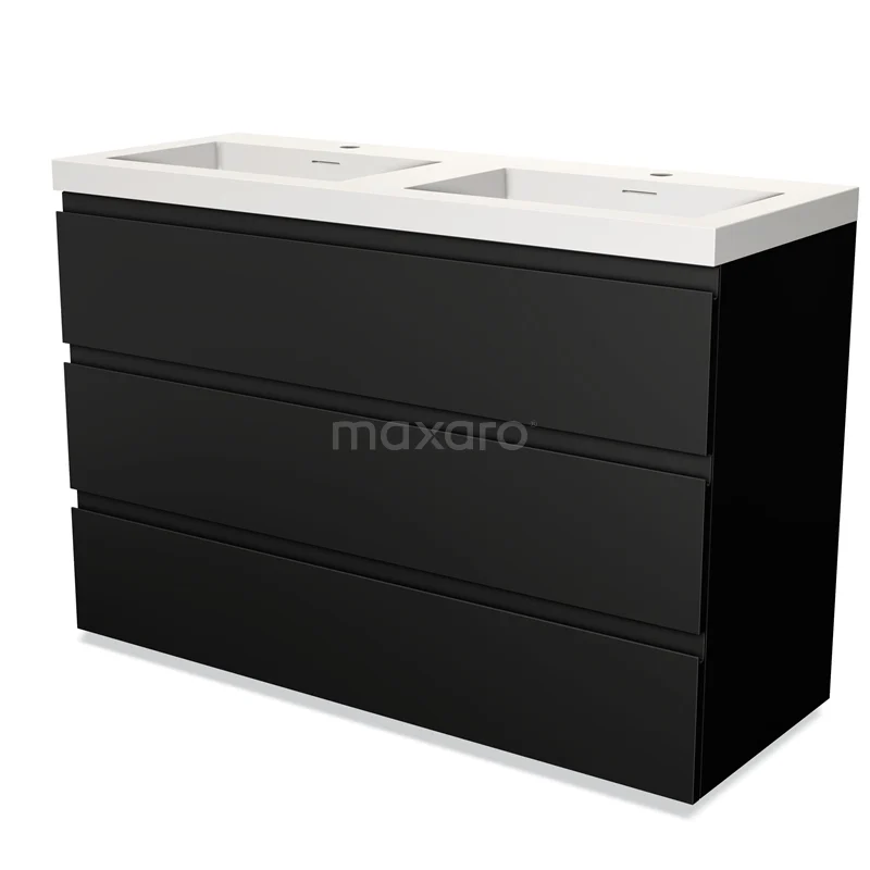 Modulo Waschtische | 120 cm Matt Schwarz Grifflos front Solid Surface 3 Schubladen