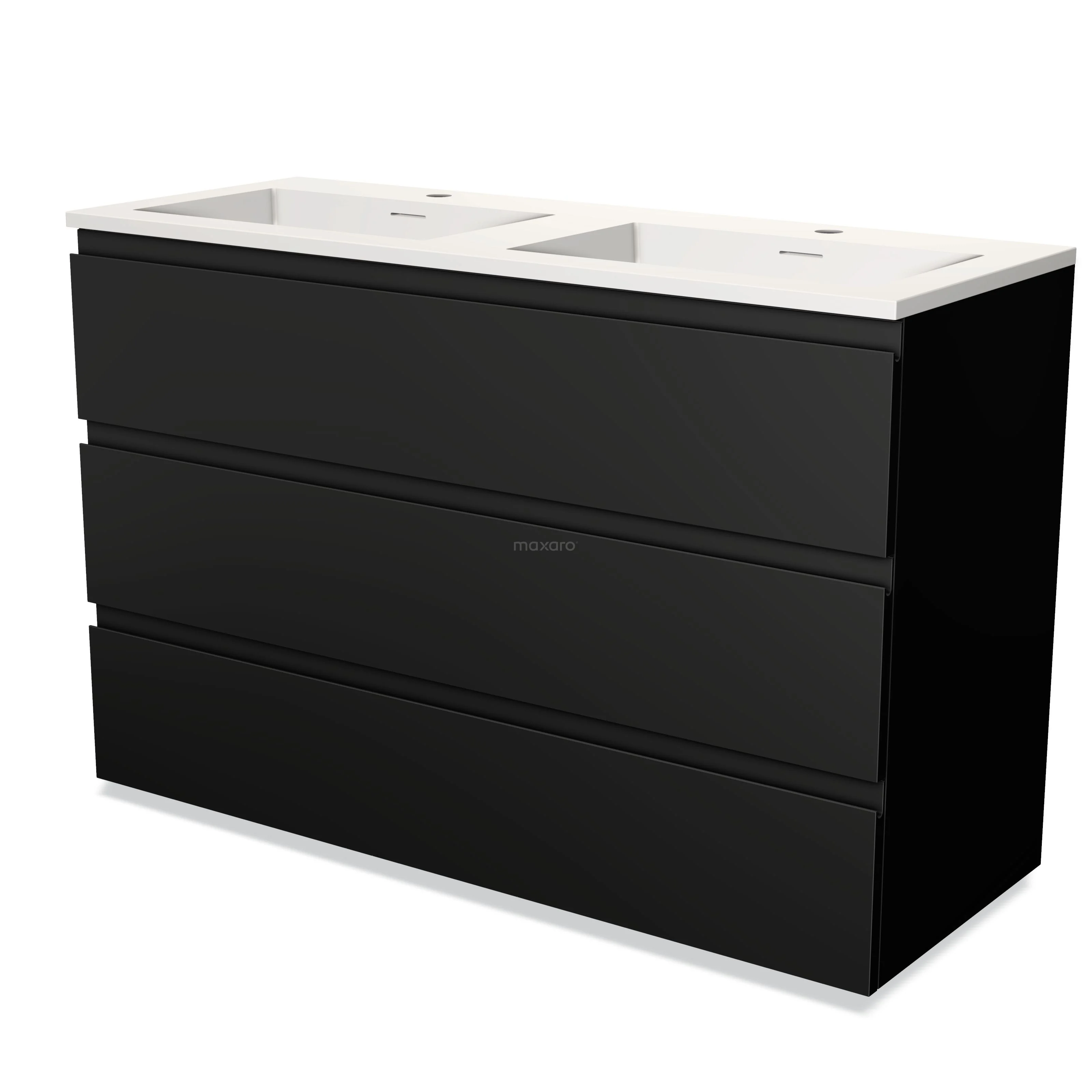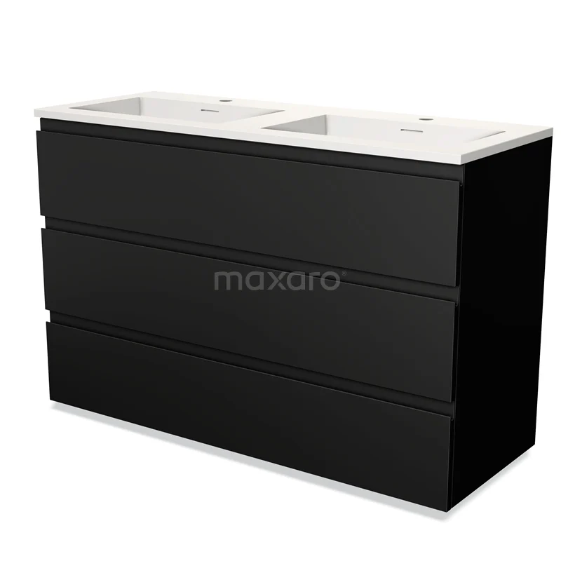 Modulo Waschtische | 120 cm Matt Schwarz Grifflos front Solid Surface 3 Schubladen