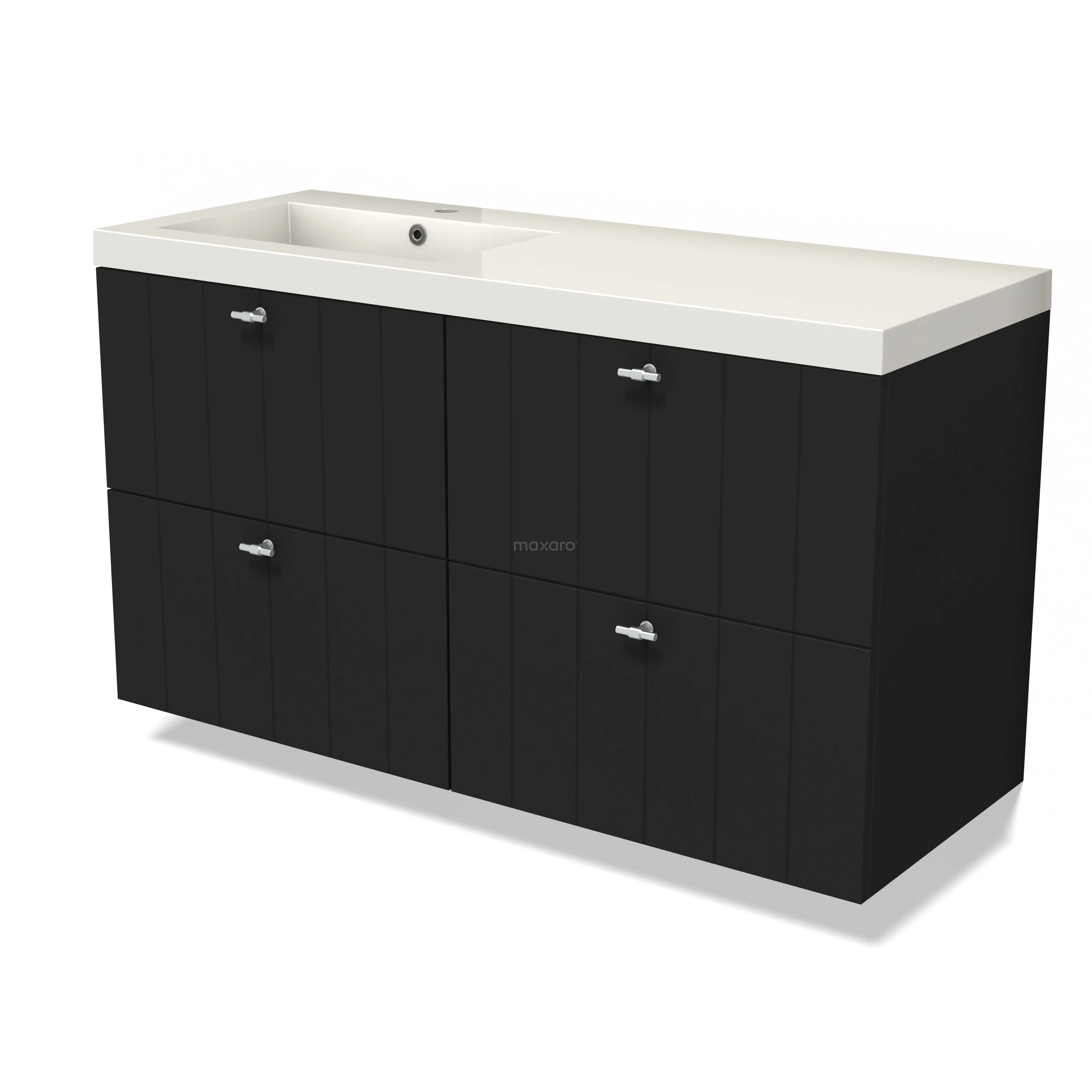 Modulo Waschtische | 120 cm Matt Schwarz Lamelle front Mineralguss 4 Schubladen