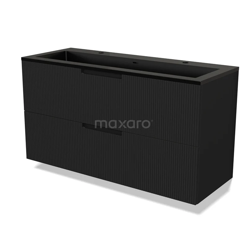 Modulo Waschtische | 120 cm Matt Schwarz Linie front Quarz 2 übereinanderliegende Schubladen