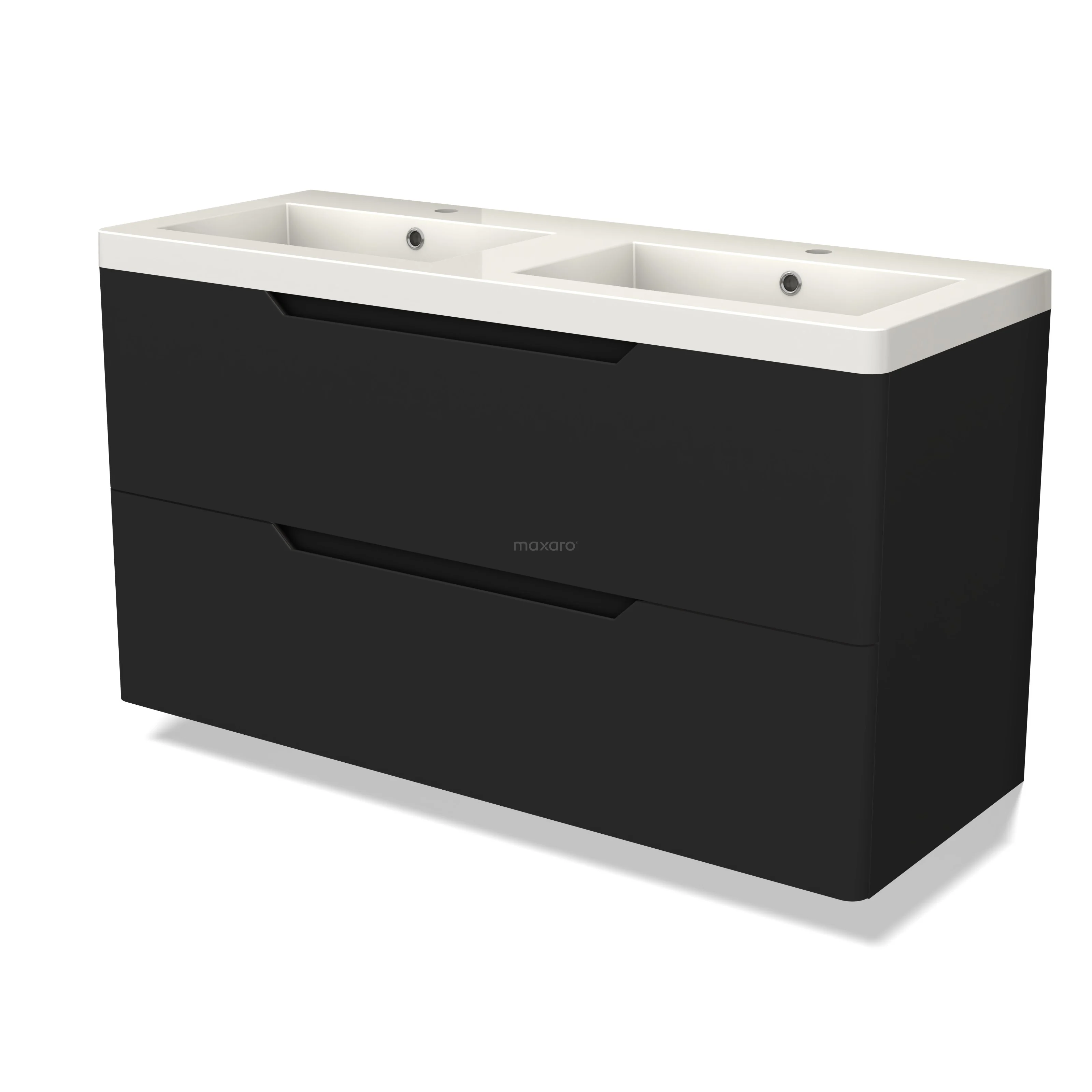 Modulo Waschtische | 120 cm Matt Schwarz Rund front Mineralguss 2 übereinanderliegende Schubladen