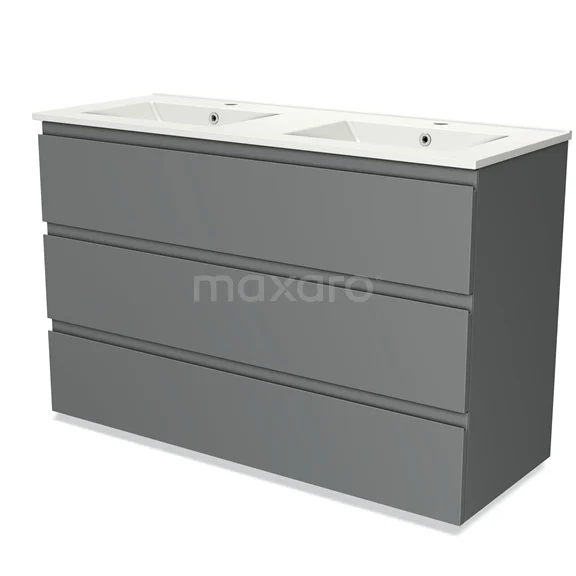 Modulo Waschtische | 120 cm Mittelgrau Grifflos front Keramik 3 Schubladen