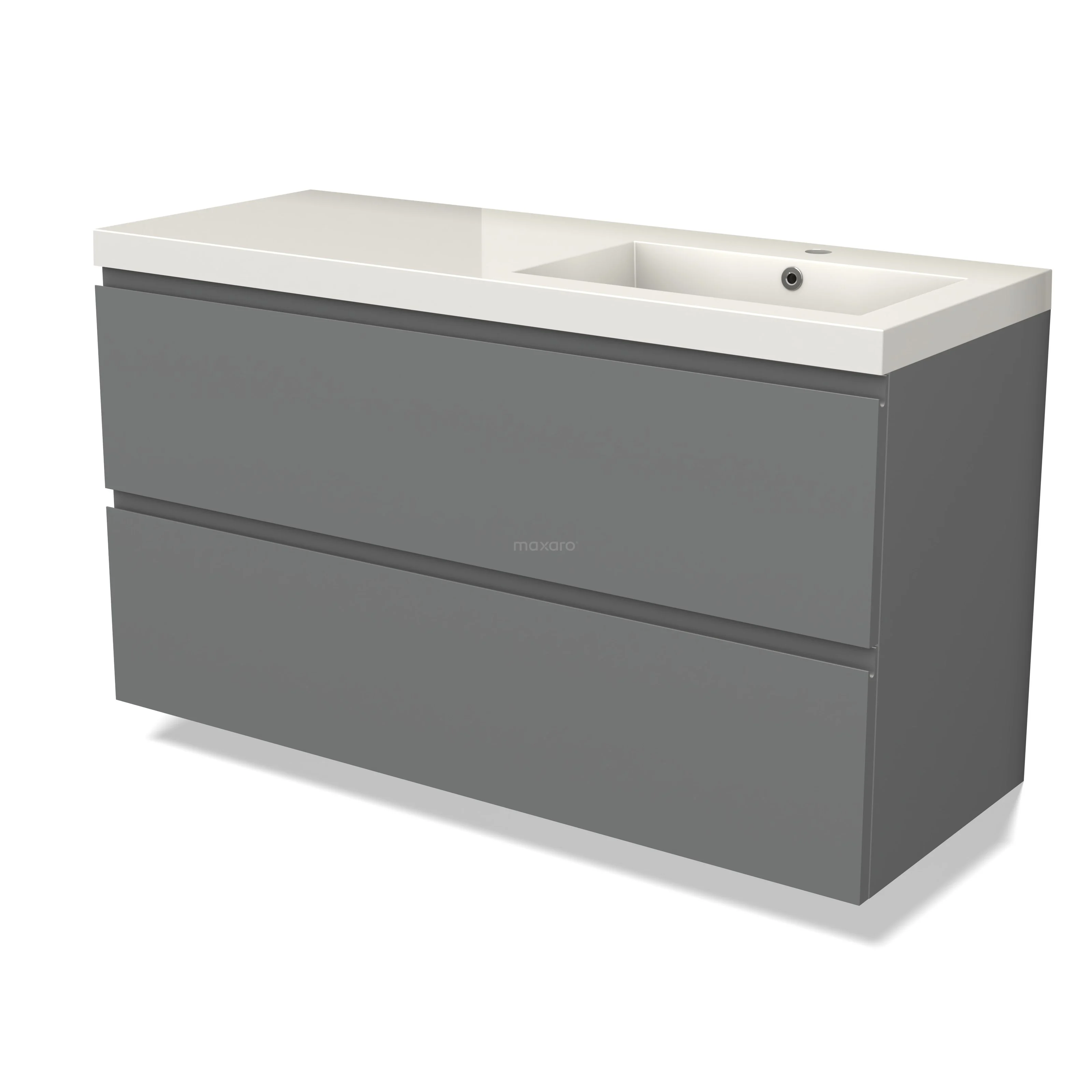 Modulo Waschtische | 120 cm Mittelgrau Grifflos front Mineralguss 2 übereinanderliegende Schubladen