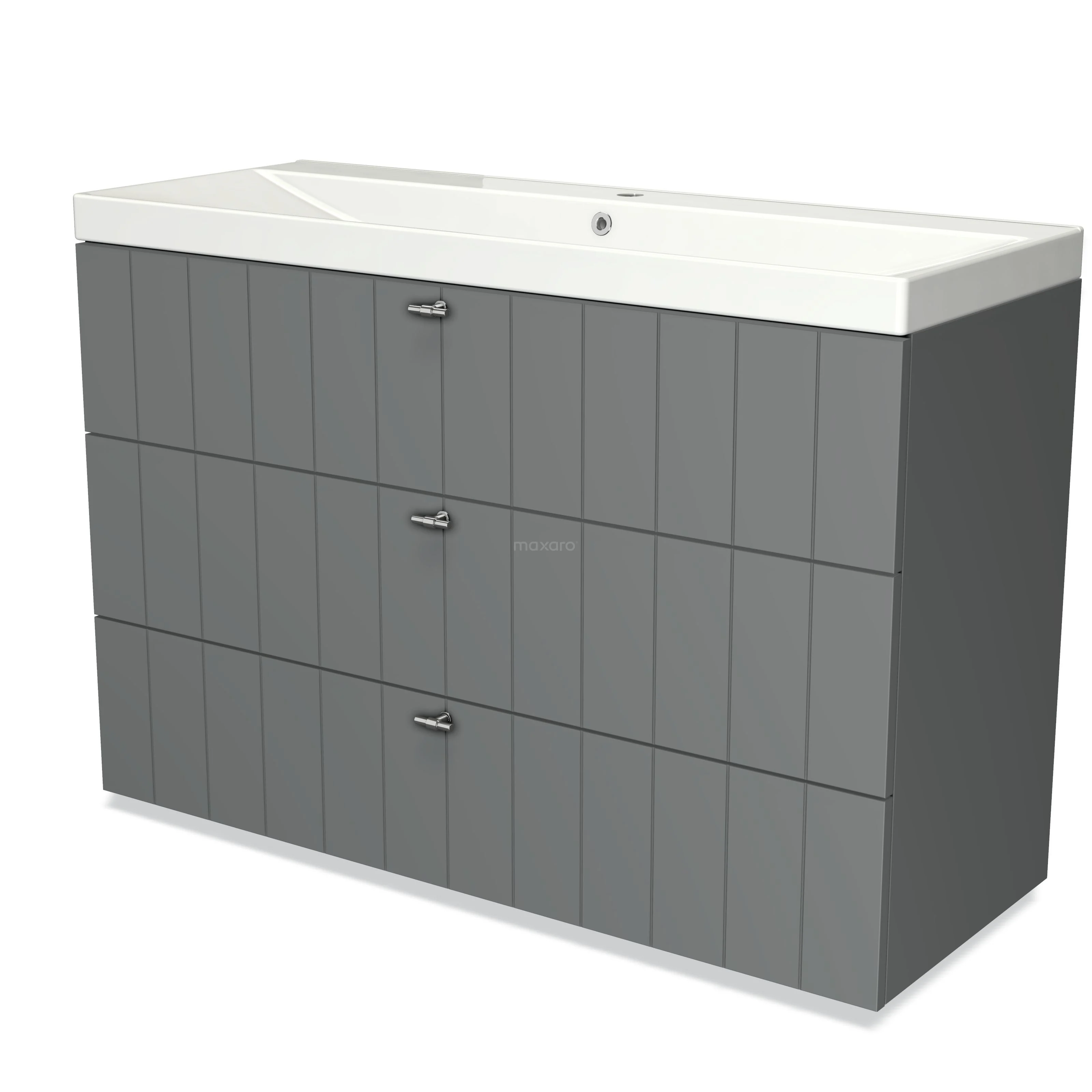 Modulo Waschtische | 120 cm Mittelgrau Lamelle front Keramik 3 Schubladen