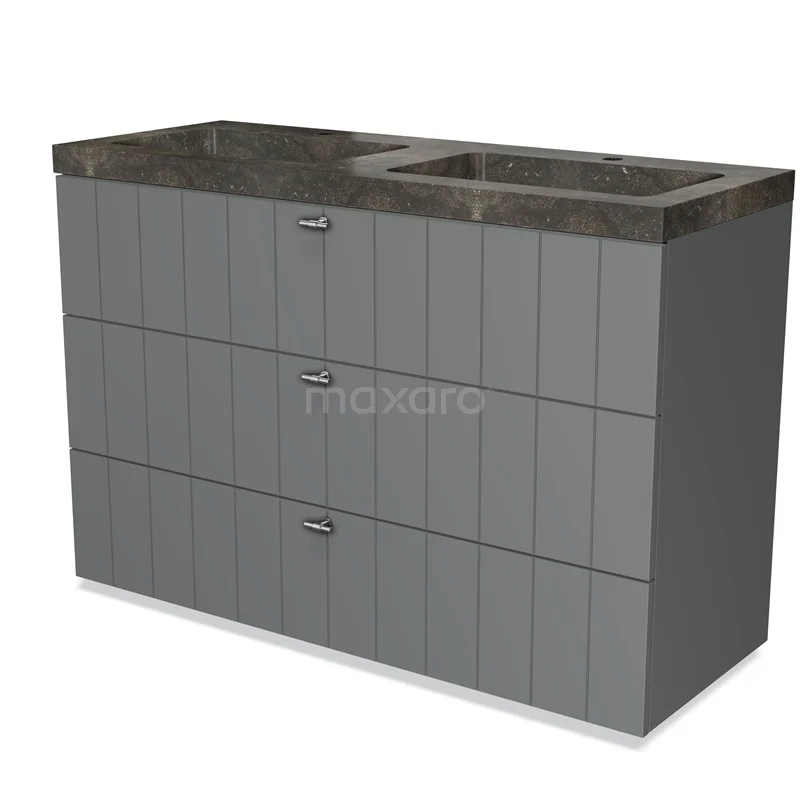 Modulo Waschtische | 120 cm Mittelgrau Lamelle front Naturstein 3 Schubladen