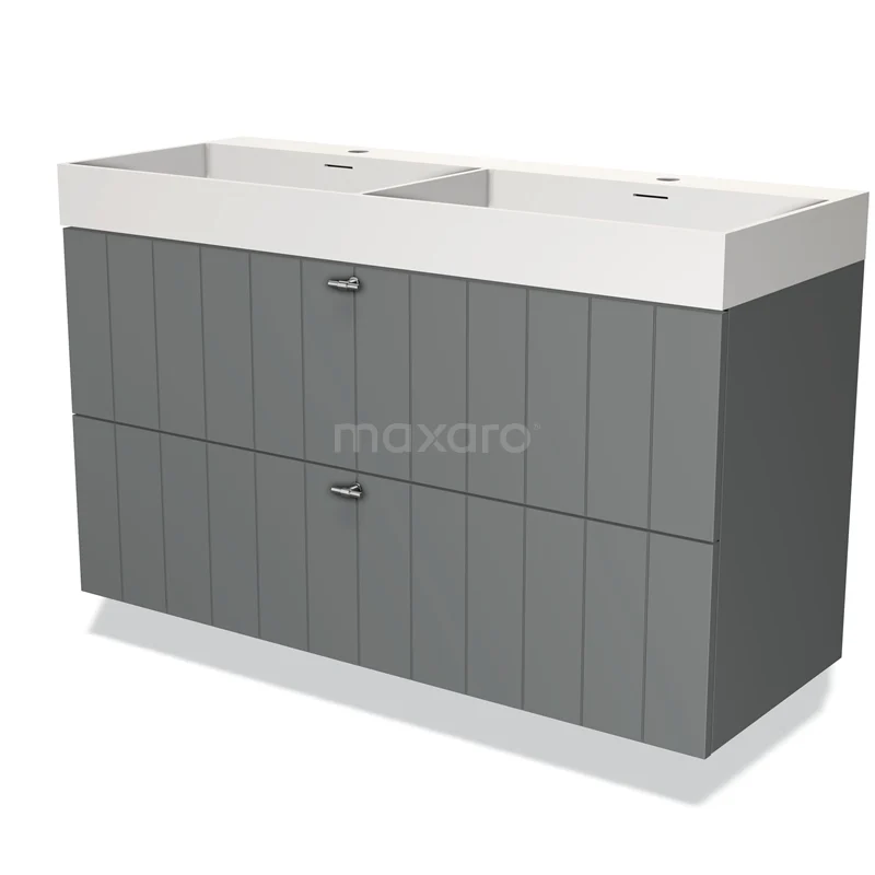 Modulo Waschtische | 120 cm Mittelgrau Lamelle front Solid Surface 2 übereinanderliegende Schubladen