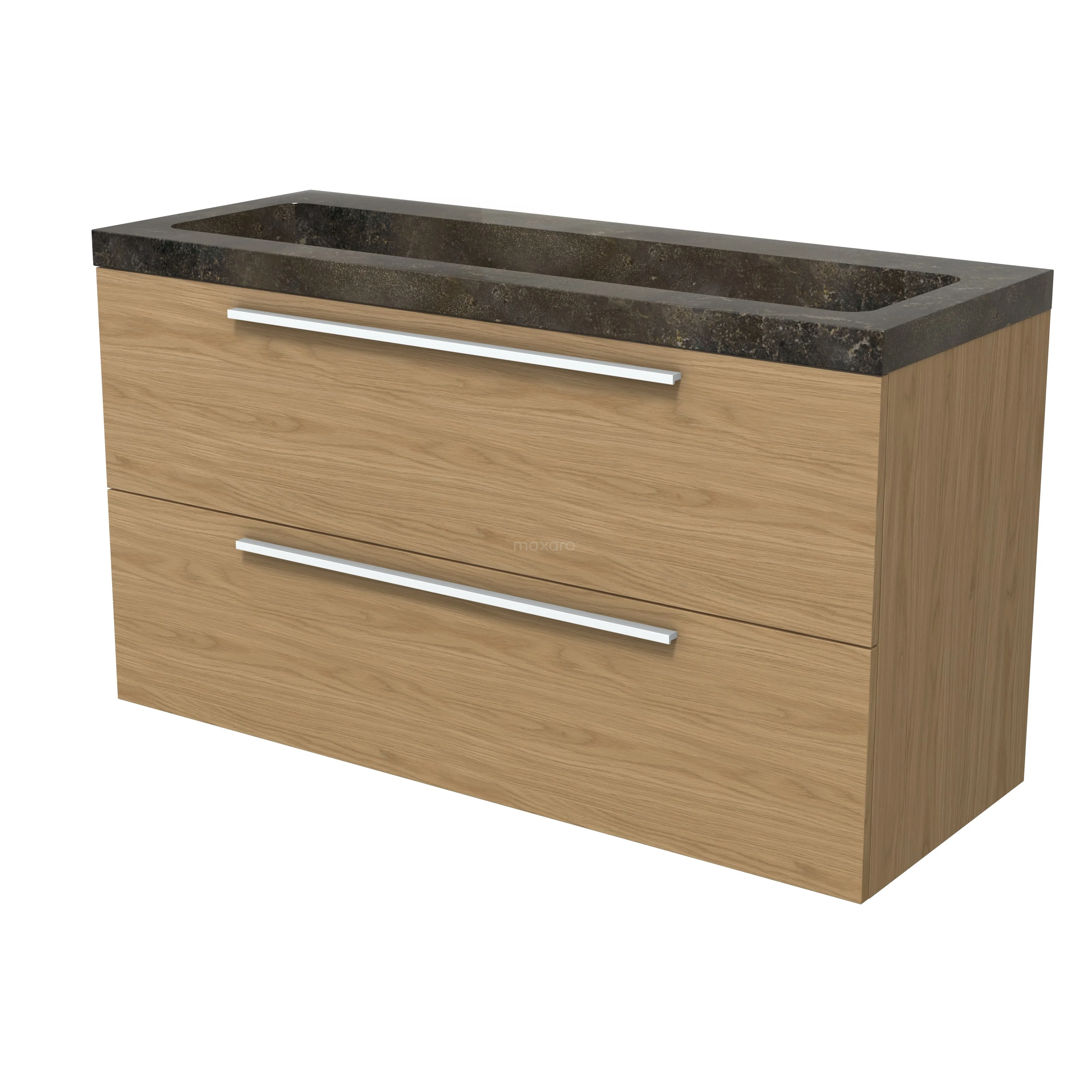 Modulo Waschtische | 120 cm Natürliches Furnier Flach front Naturstein 2 übereinanderliegende Schubladen BMW17-05286