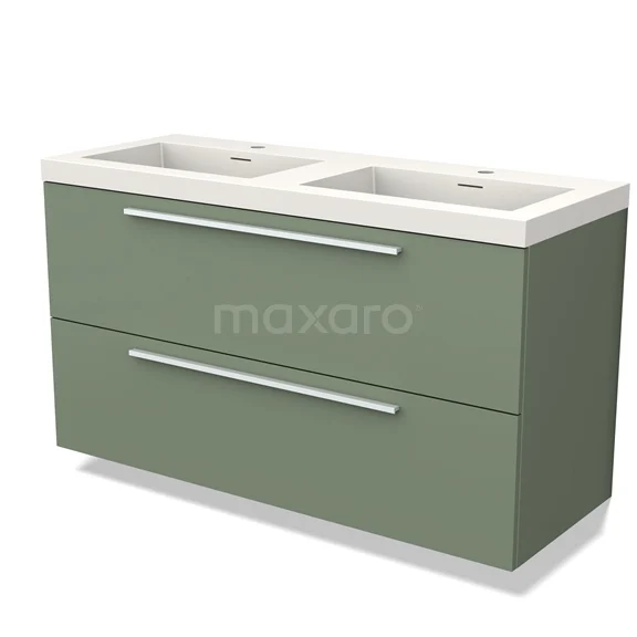 Modulo Waschtische | 120 cm Salbeigrün Flach front Solid Surface 2 übereinanderliegende Schubladen