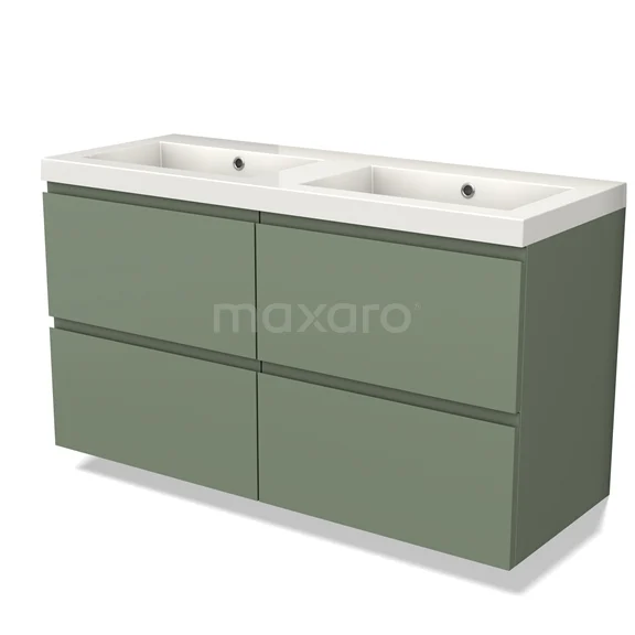 Modulo Waschtische | 120 cm Salbeigrün Grifflos front Mineralguss 4 Schubladen