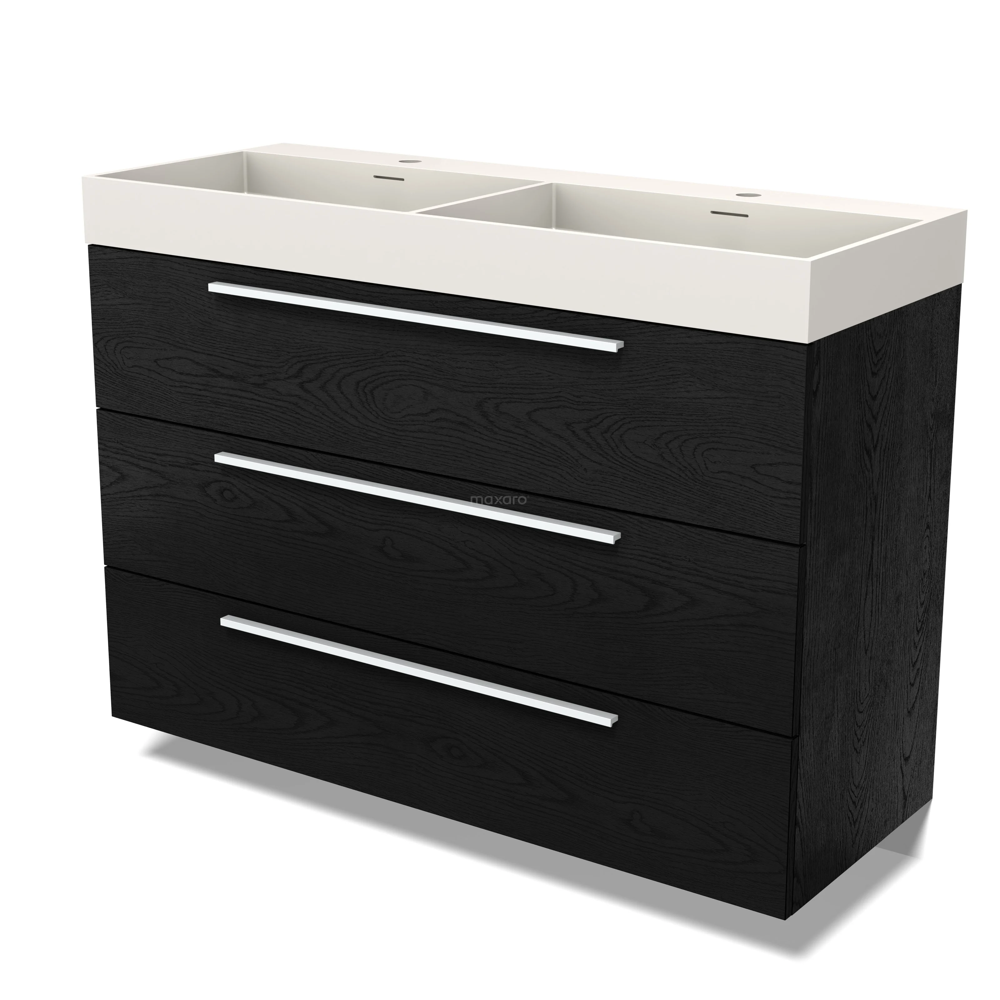 Modulo Waschtische | 120 cm Schwarze Eiche Flach front Solid Surface 3 Schubladen