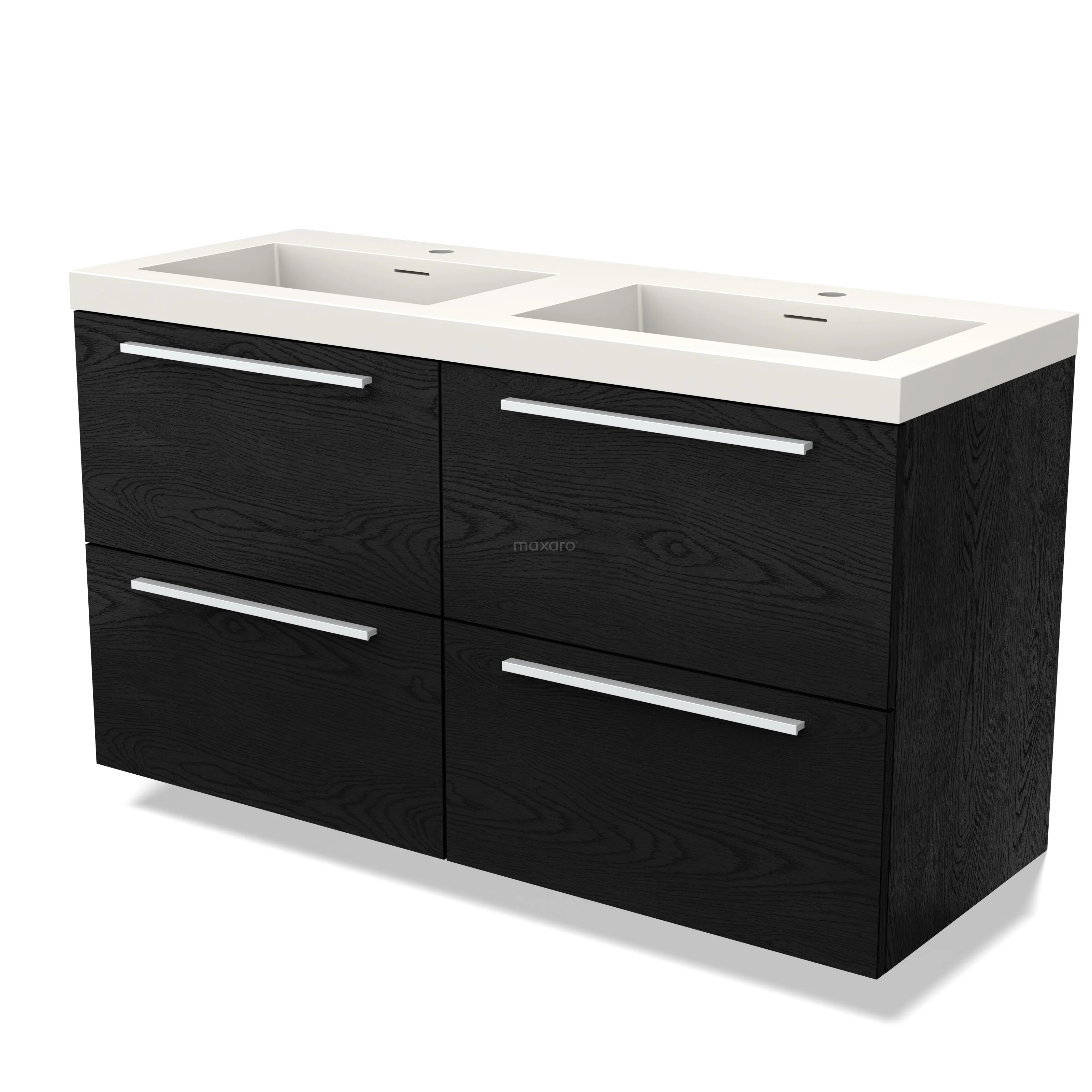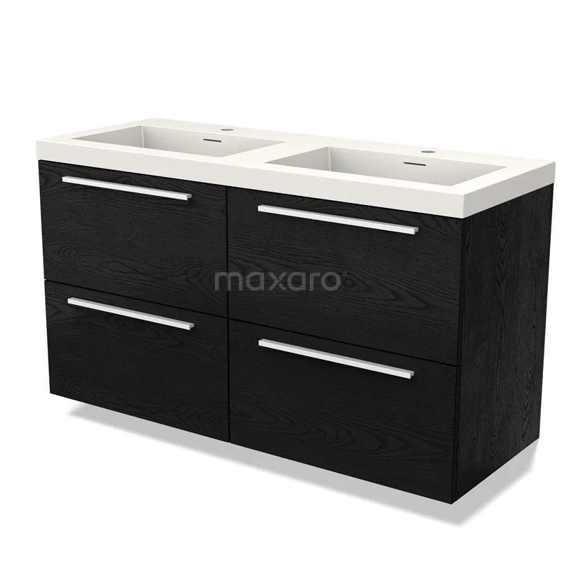 Modulo Waschtische | 120 cm Schwarze Eiche Flach front Solid Surface 4 Schubladen
