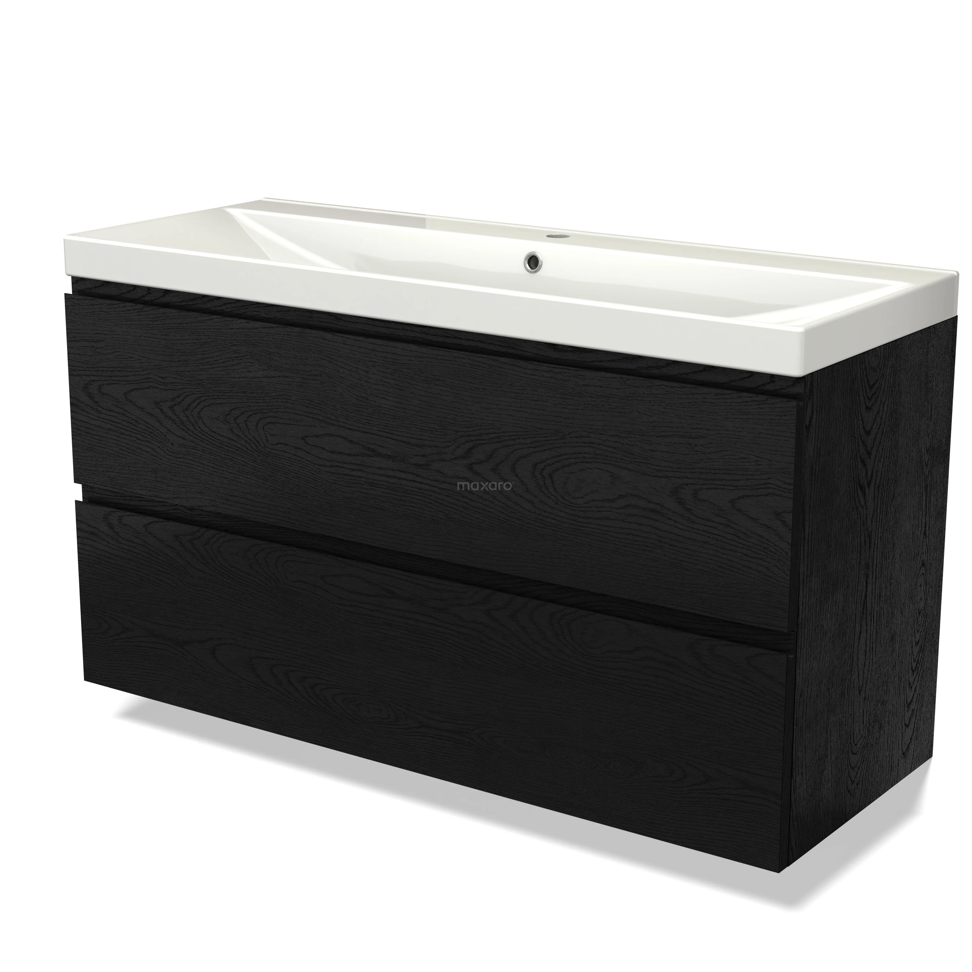 Modulo Waschtische | 120 cm Schwarze Eiche Grifflos front Keramik 2 übereinanderliegende Schubladen