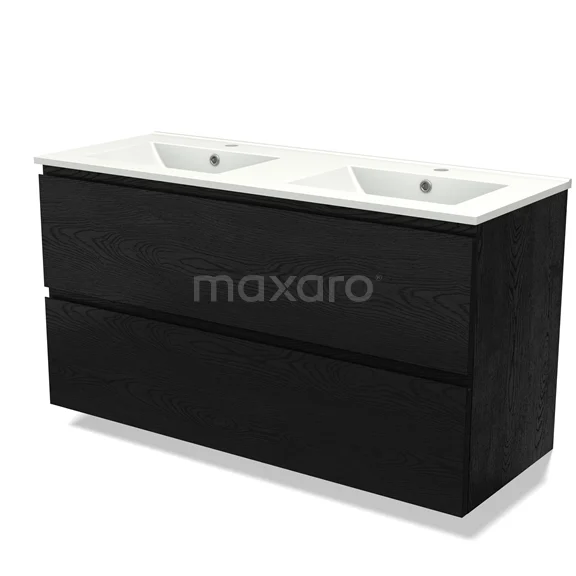 Modulo Waschtische | 120 cm Schwarze Eiche Grifflos front Keramik 2 übereinanderliegende Schubladen