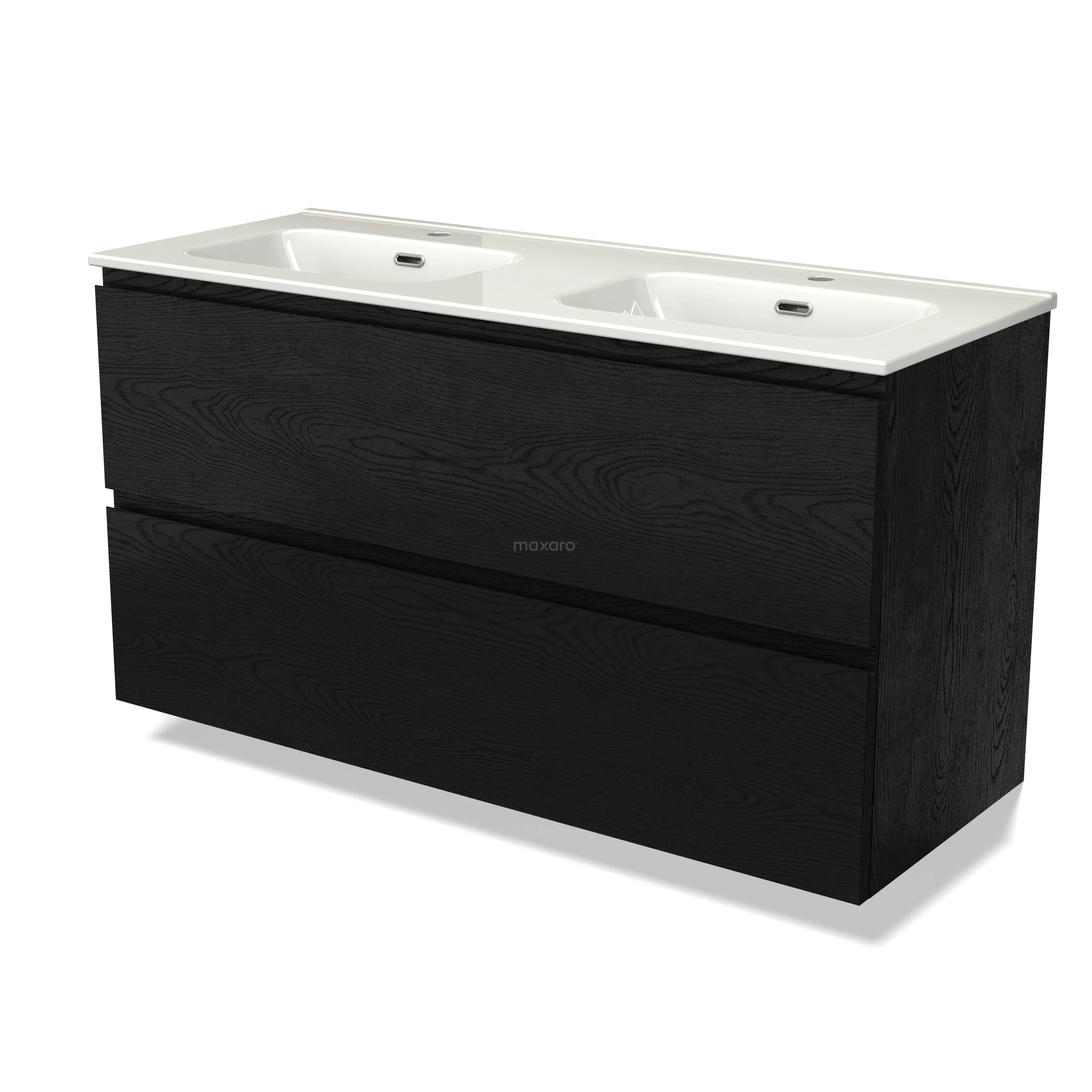 Modulo Waschtische | 120 cm Schwarze Eiche Grifflos front Keramik 2 übereinanderliegende Schubladen